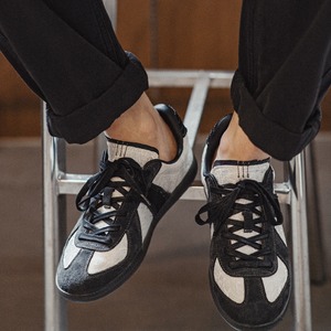 レトロなデザインのスリップオンシューズは、普段使いからちょっとしたお出かけまで幅広く活躍します。シンプルながらも存在感のあるデザインは、様々なスタイルに合わせやすく、コーディネートのアクセントにもなります。