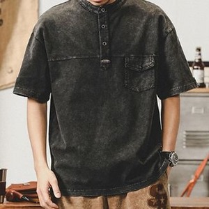 Band Collar Pocket Short-Sleeve Shirt ◇3color H0131