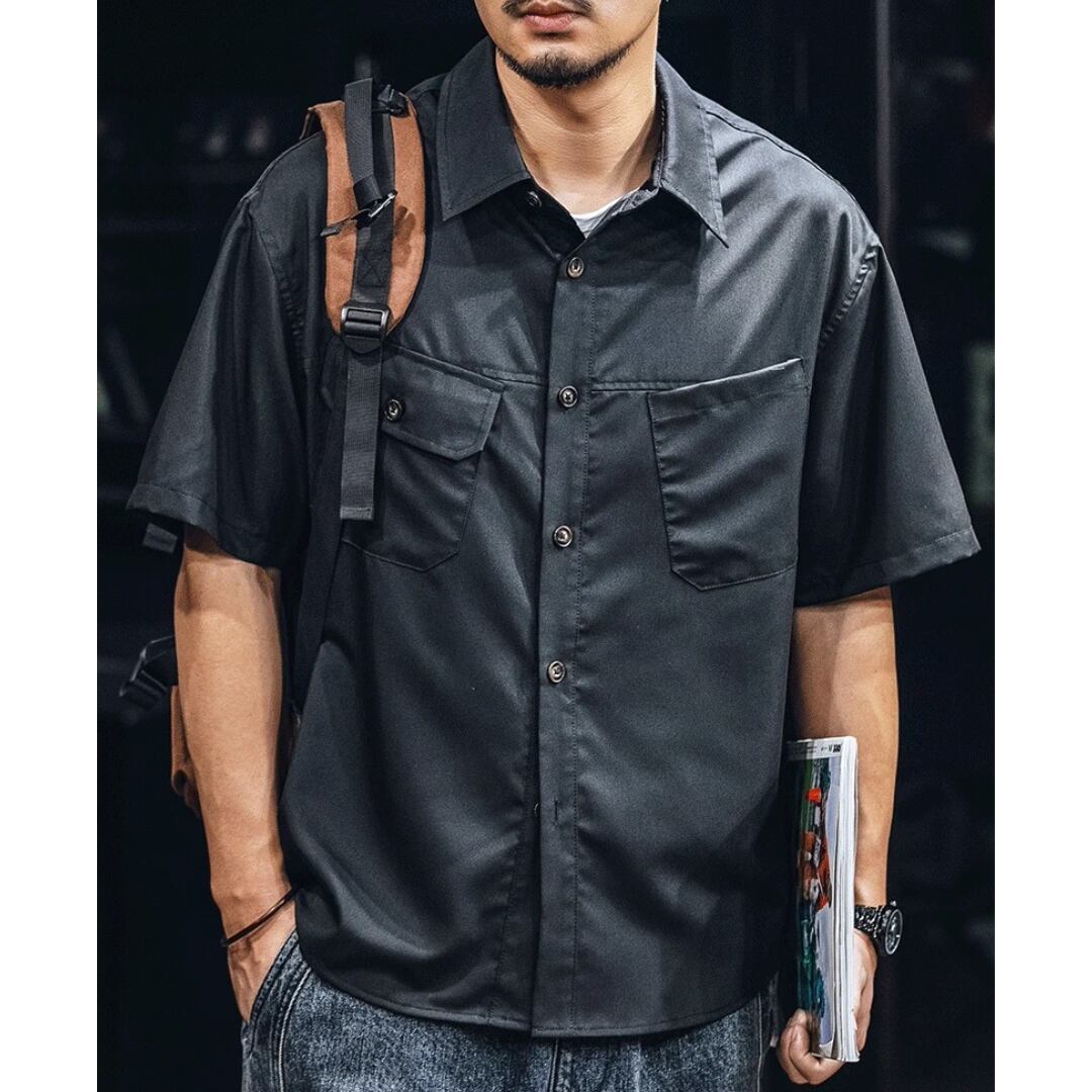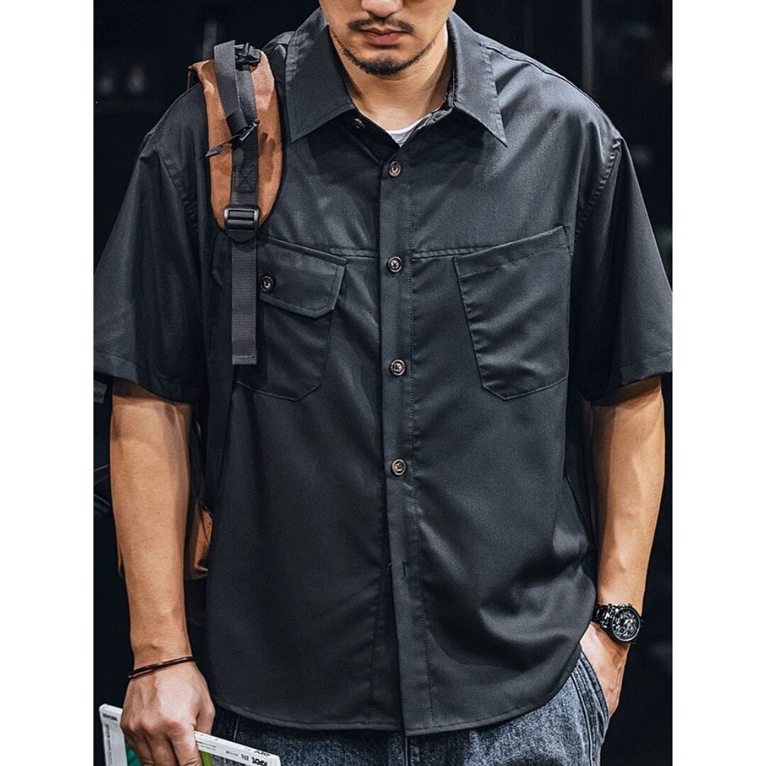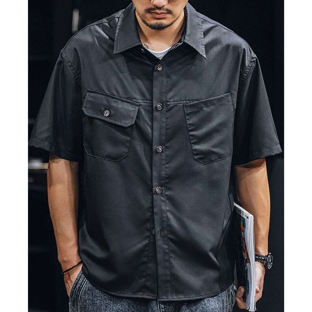 Patch Pocket Short Sleeve Button Down Shirt ◇H0394