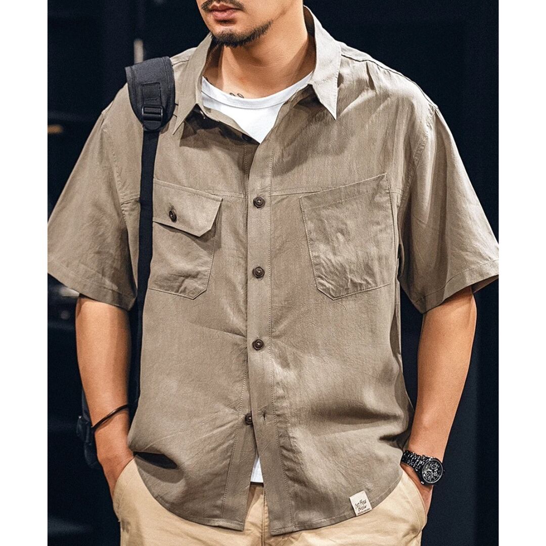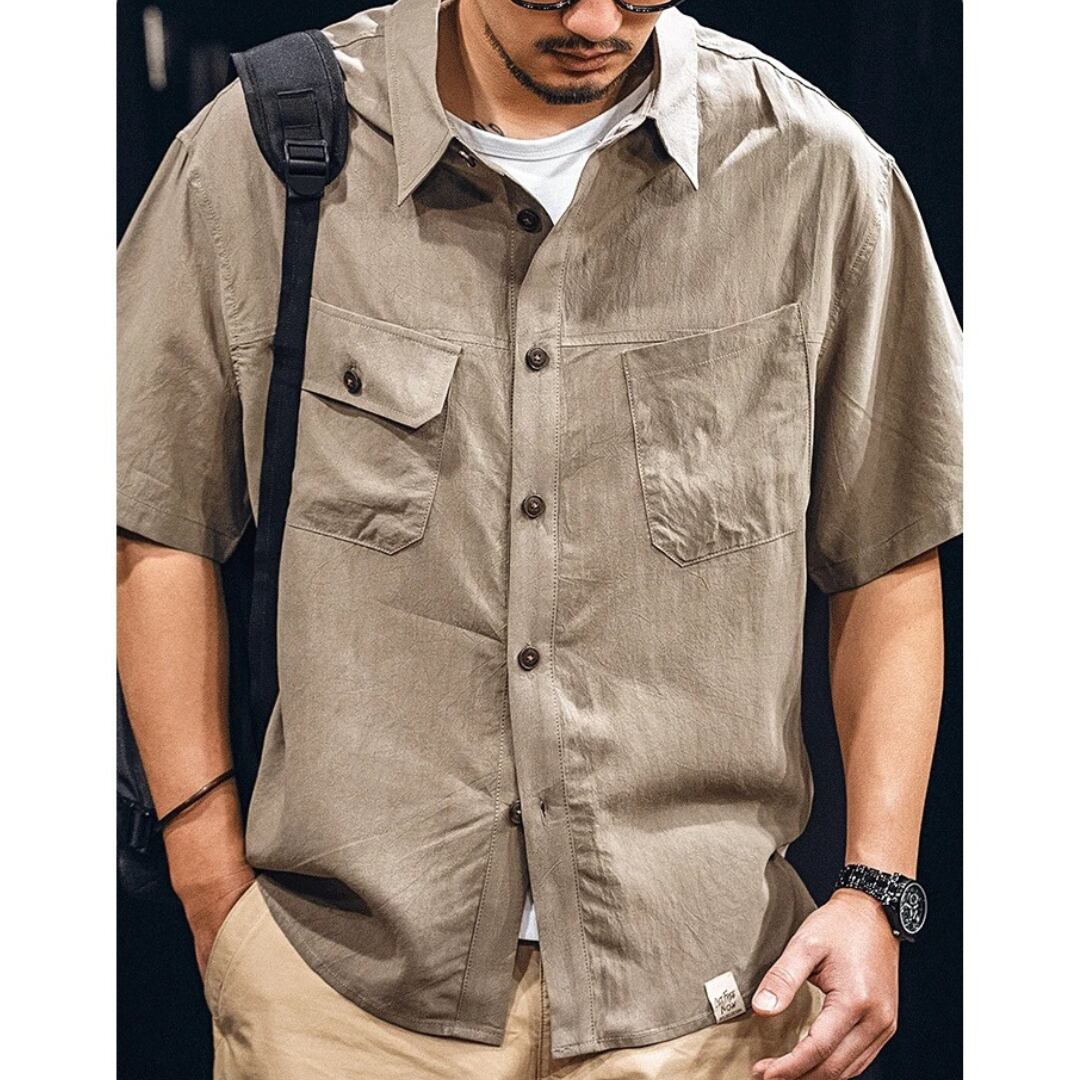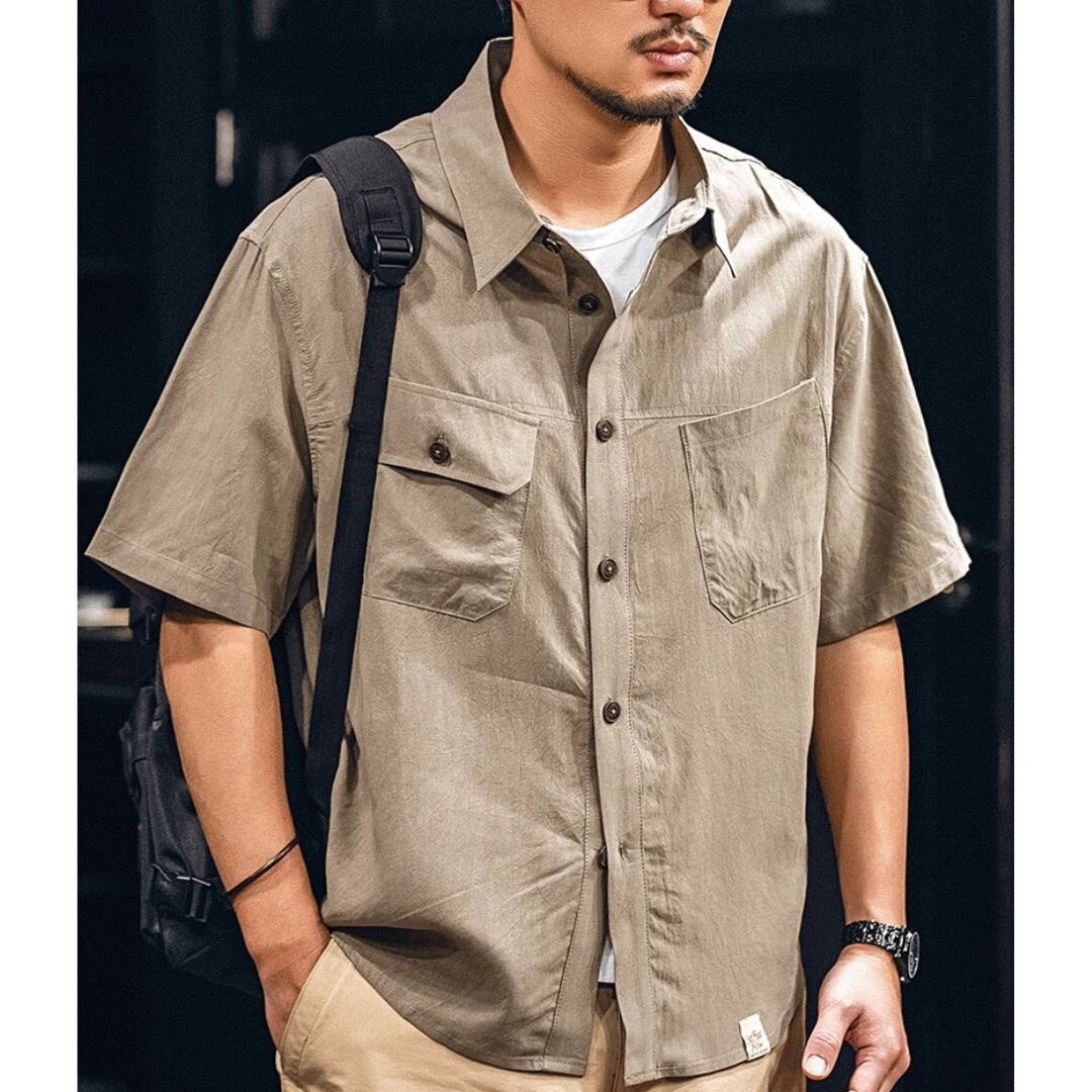 Linen Material Short Sleeve Button Down Shirt ◇H0395