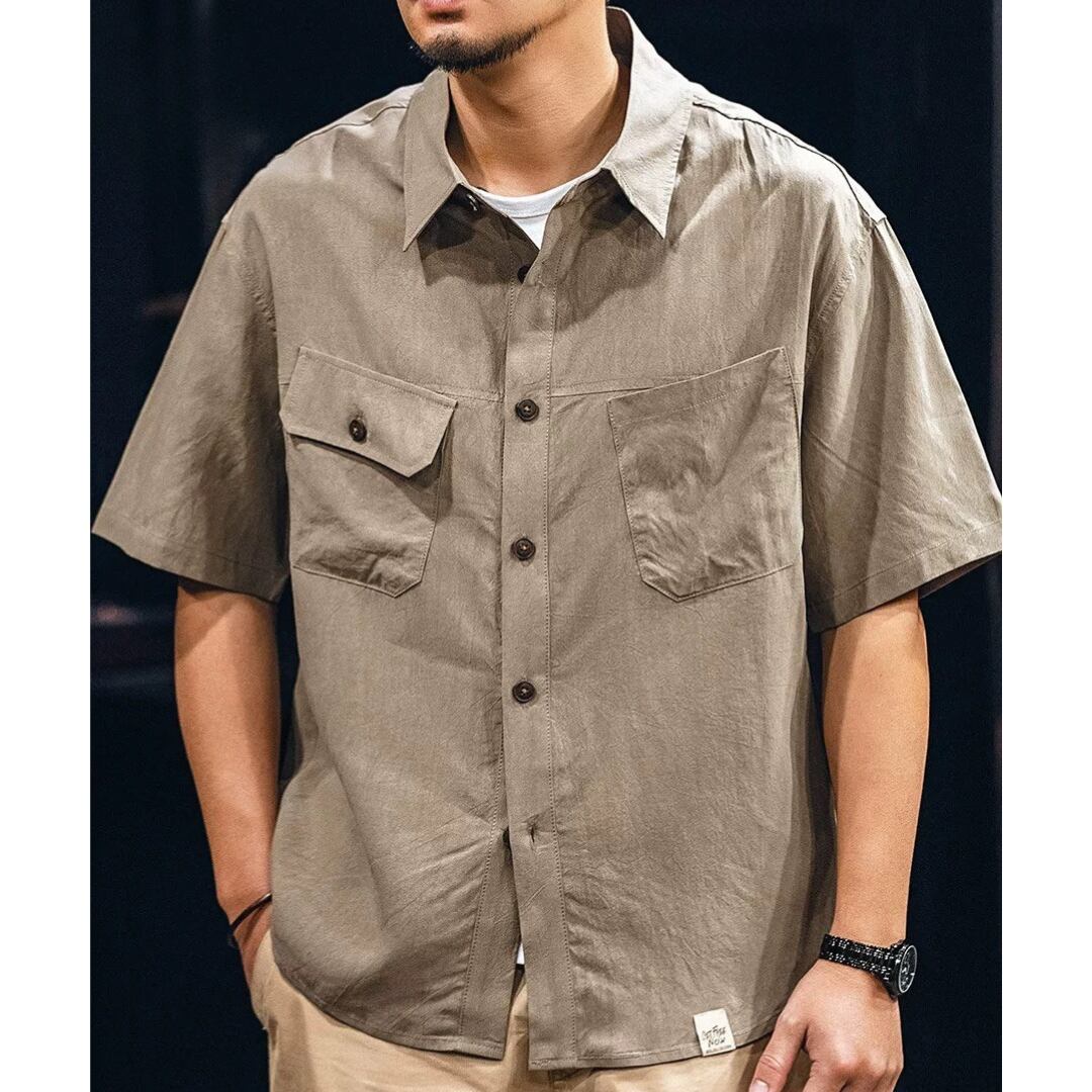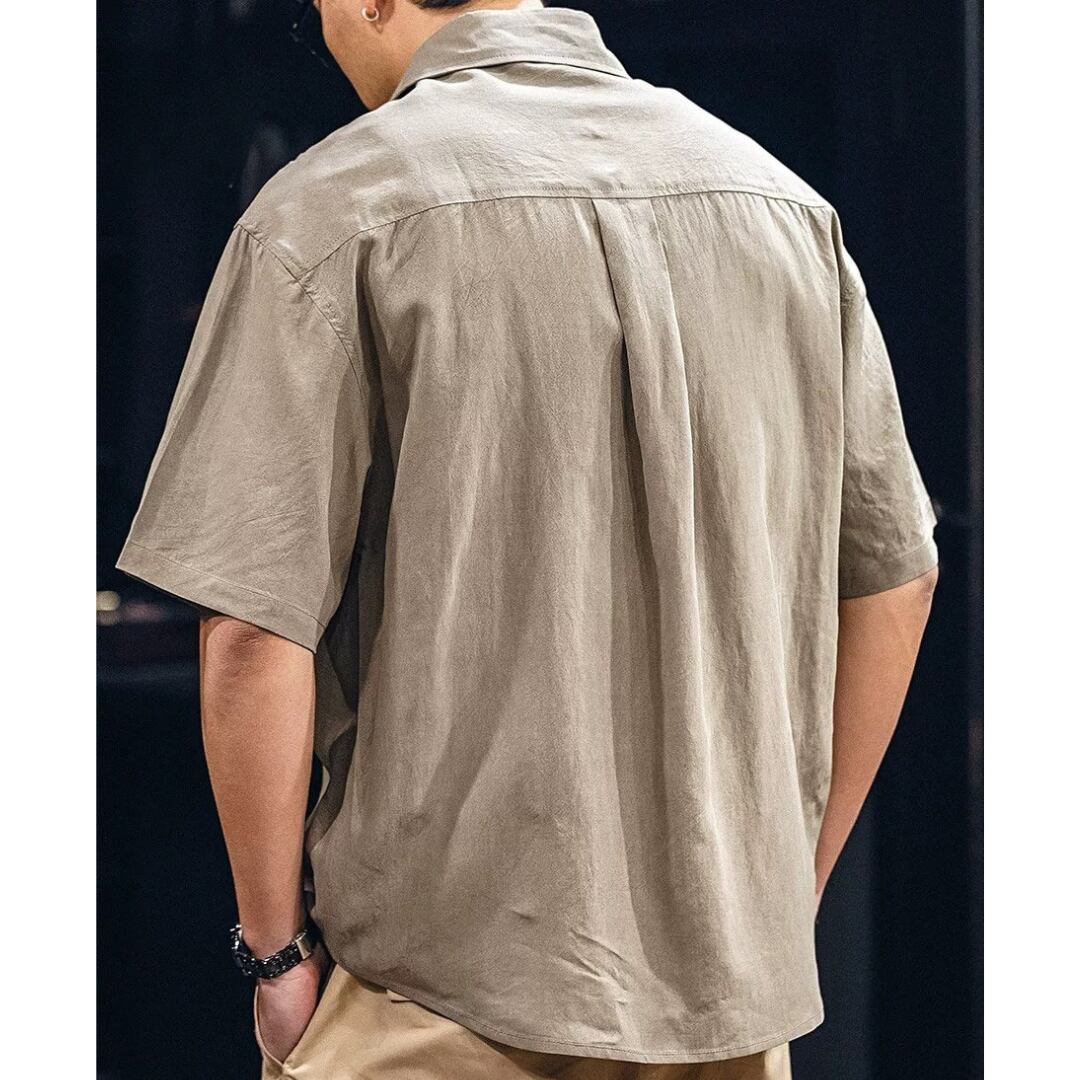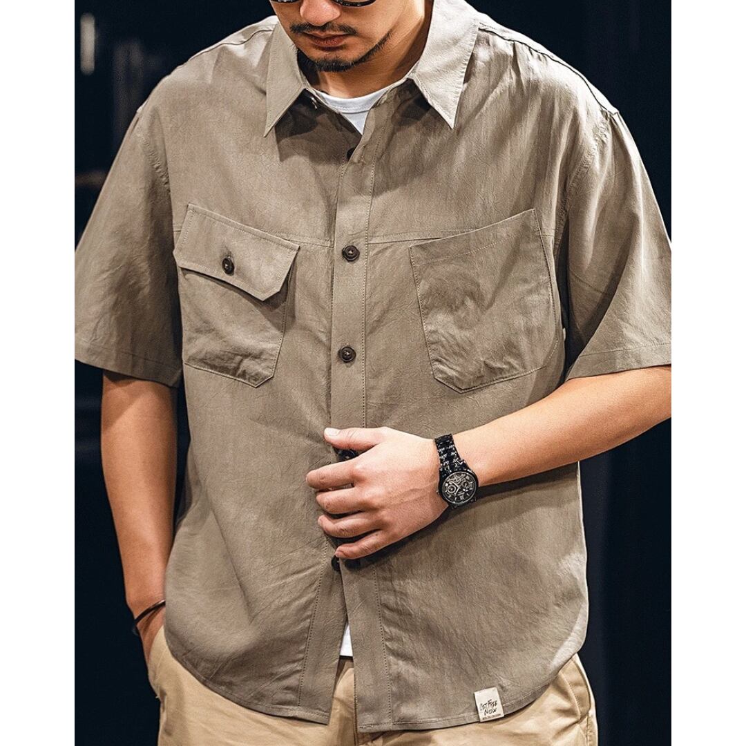 Linen Material Short Sleeve Button Down Shirt ◇H0395