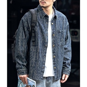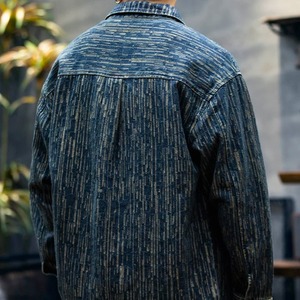 縦ストライプ柄が特徴のデニムシャツです。レギュラーカラーとロングスリーブのデザインで、様々なスタイルに合わせやすいアイテムです。普段使いはもちろん、カジュアルなシーンにも最適です。着回し力が高く、一着持っていると重宝します。