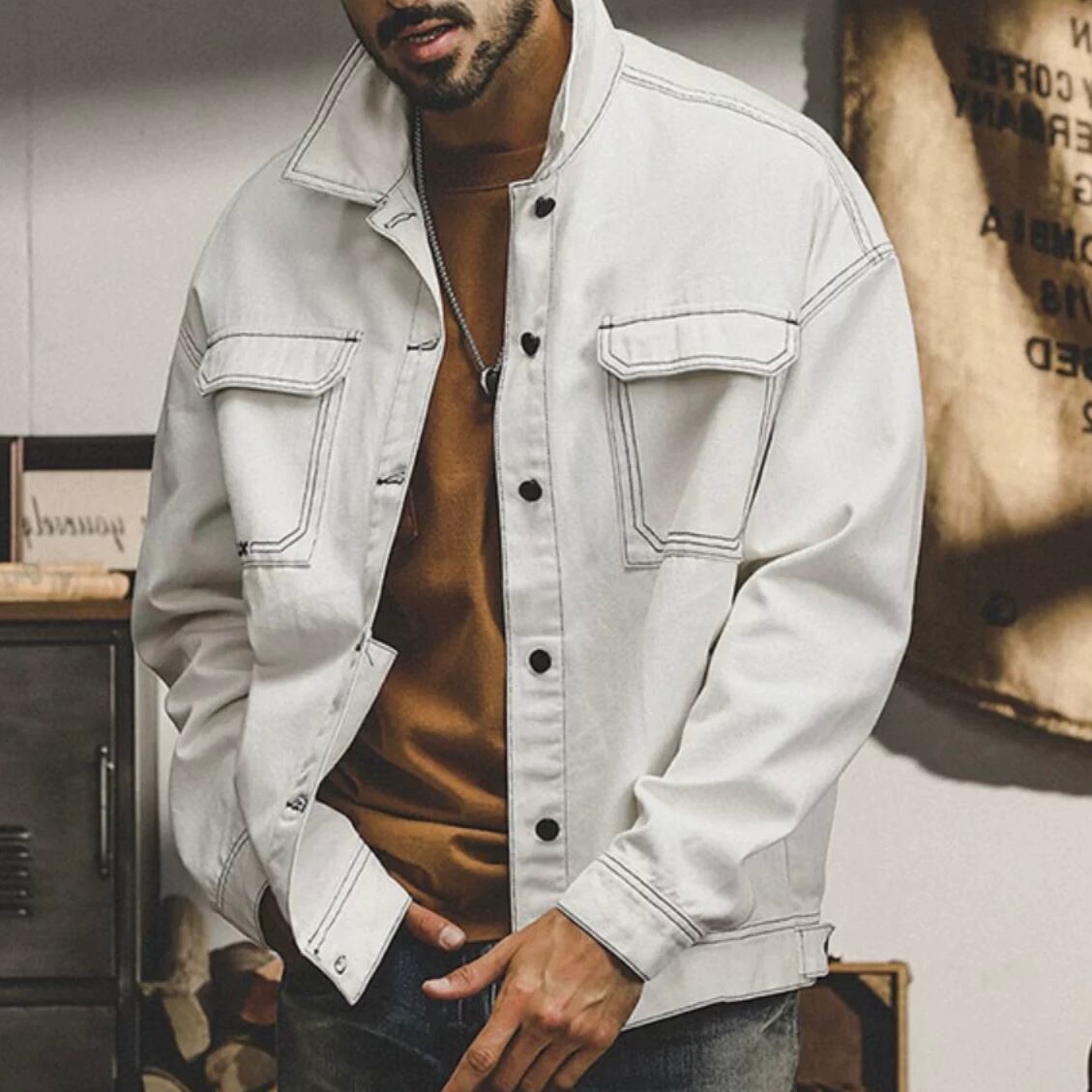 オーバーサイズのデニムジャケットは、ゆったりとした着心地とこなれたシルエットが魅力です。 パッチポケットがアクセントになり、カジュアルなスタイルにぴったり。 ボタンフロントで着脱も簡単です。様々なコーディネートに合わせやすく、着回し力抜群の一着です。 ◇サイズ◇ M 肩幅56cm バスト118cm 着丈68cm 袖丈53cm L 肩幅57cm バスト122cm 着丈70cm 袖丈54cm XL 肩幅58cm バスト126cm 着丈71cm 袖丈55cm 2XL 肩幅59cm バスト130cm 着丈73cm 袖丈56cm 3XL 肩幅60cm バスト134cm 着丈74cm 袖丈57cm 4XL 肩幅62cm バスト138cm 着丈74cm 袖丈57cm 5XL 肩幅63cm バスト142cm 着丈76cm 袖丈58cm ※採寸方法により約1‐3cm程度誤差が生じる場合がございます。 ◇カラー◇ ホワイト/ブラック ◇素材◇ コットン Instagramはコチラ▼ https://www.instagram.com/hikeoutdoor.official HIKE人気アイテムはコチラ▼ https://shop.hike333.shop/categories/6413735 Shop top pageはコチラ▼ https://shop.hike333.shop/ 【ご購入前に必ず、こちらをお読みください】 https://shop.hike333.shop/about 【注意事項】 ・ご購入後商品の在庫切れにより欠品のご案内を差し上げることがございます。予めご了承ください。 ・ご覧いただいているPCやスマートフォンの画面により実物と多少色合いが異なる場合がございます。 ご了承くださいませ。 ・イメージ違いやサイズ交換等、お客さまご都合による交換、返品は対応出来かねます。 【お届けについて】 ・HIKEはお客様からのご注文を受け、1点1点お客様の商品を製作、取り寄せさせていただいております。 その為ご入金から2週間~4週間前後でお届け致します。 ・ご注文の混雑状況や商品の在庫状況により、4週間以上かかる場合もございますので予めご了承ください。 その際にはメールにてご連絡をさせて頂きます。 【梱包について】 ・環境に配慮し、簡易包装にてお届けさせて頂いております。 ご理解の程宜しくお願い致します。