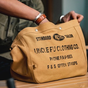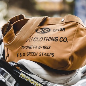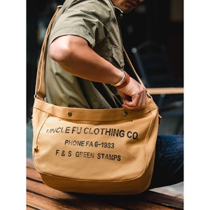 使い勝手の良いキャンバス素材のショルダーバッグです。ドローストリングで開閉でき、必要なものをサッと取り出せます。普段使いからちょっとしたお出かけまで幅広く活躍します。シンプルながらも、レトロなデザインが魅力です。