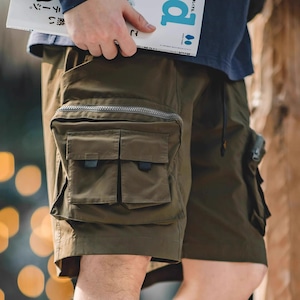 マルチポケットで機能性抜群のショートパンツです。様々なシーンで活躍するデザインと、収納力の高さが魅力。普段使いはもちろん、アウトドアや旅行にも最適です。