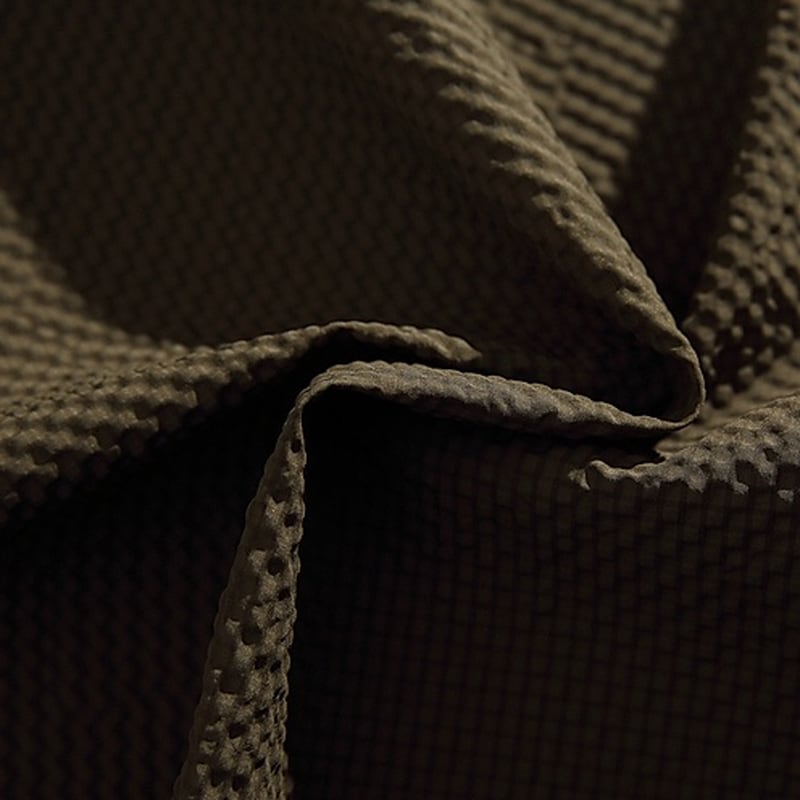 異なるカラーの生地を組み合わせたデザインが、着こなしにアクセントを加えます。