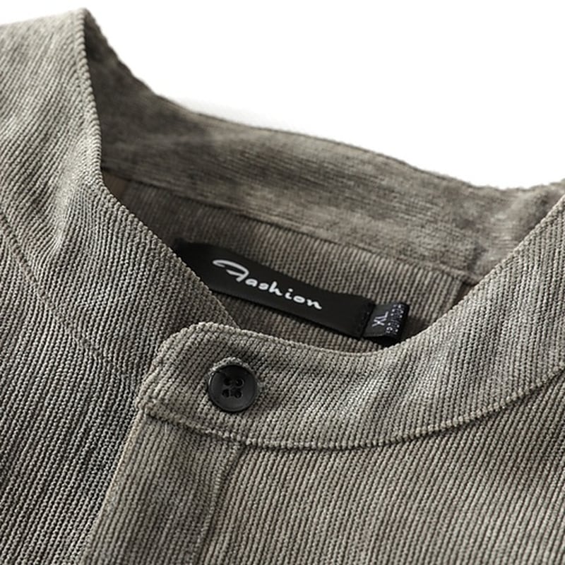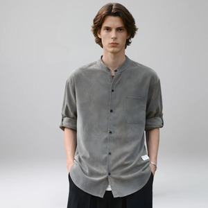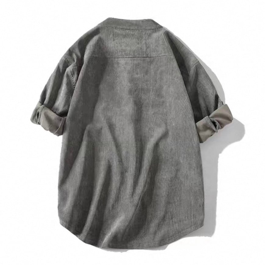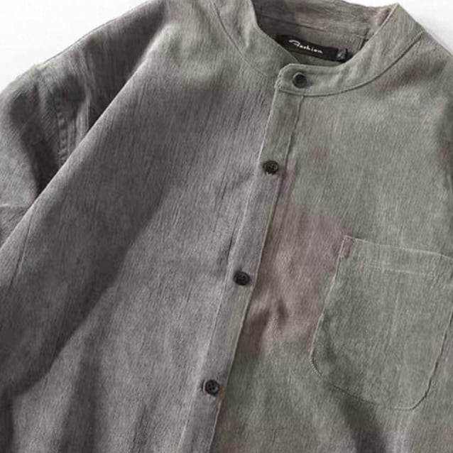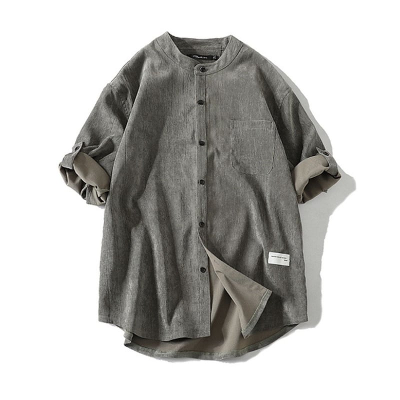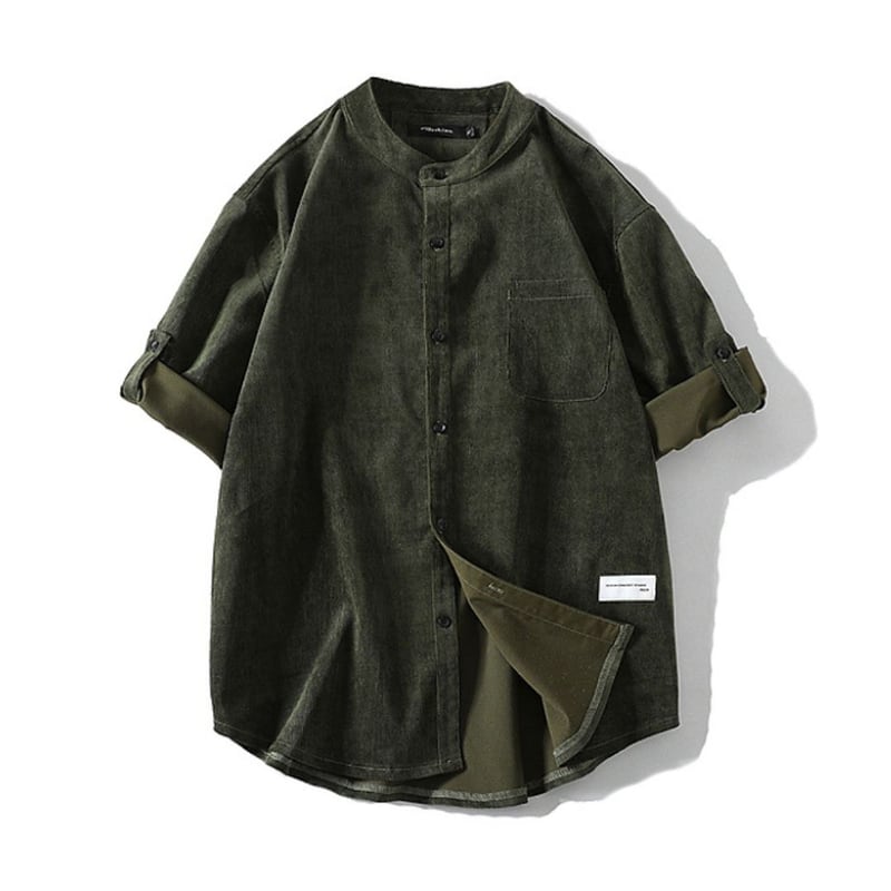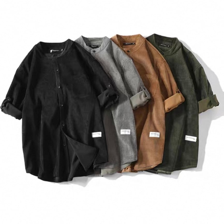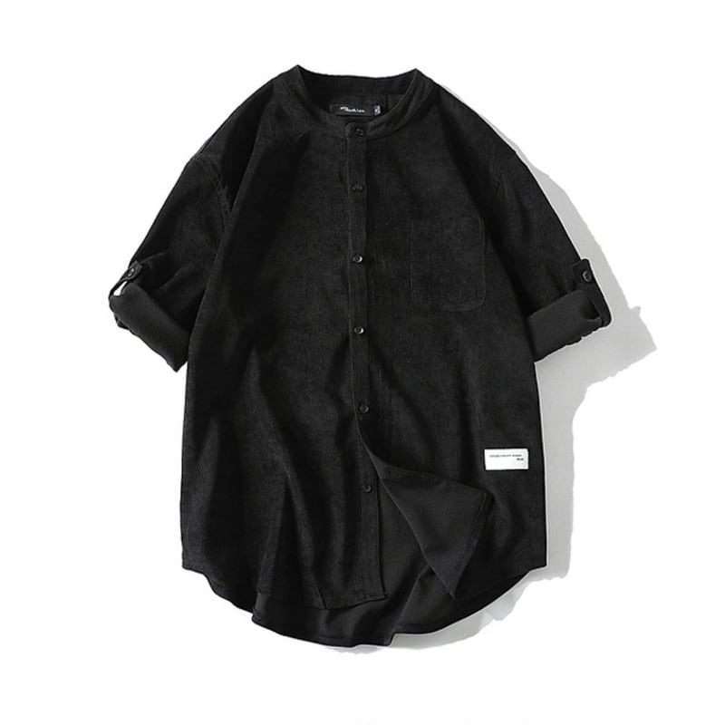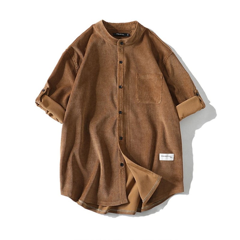Corduroy Band Collar Three-Quarter Sleeve Shirt ◇4color H0438
