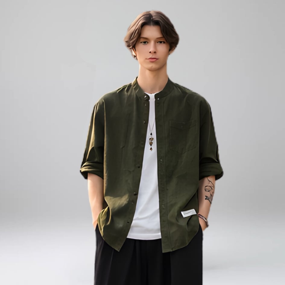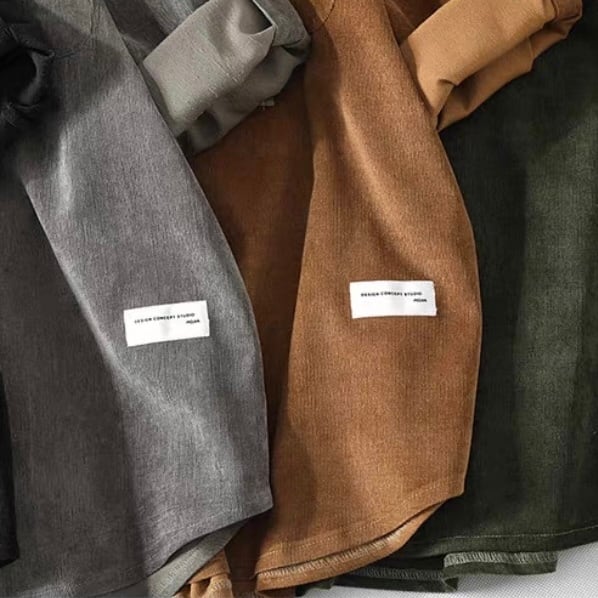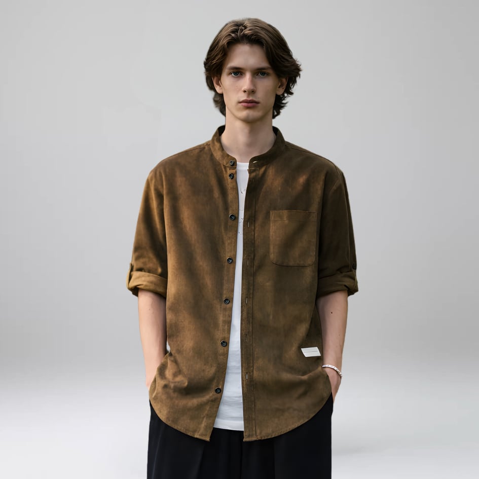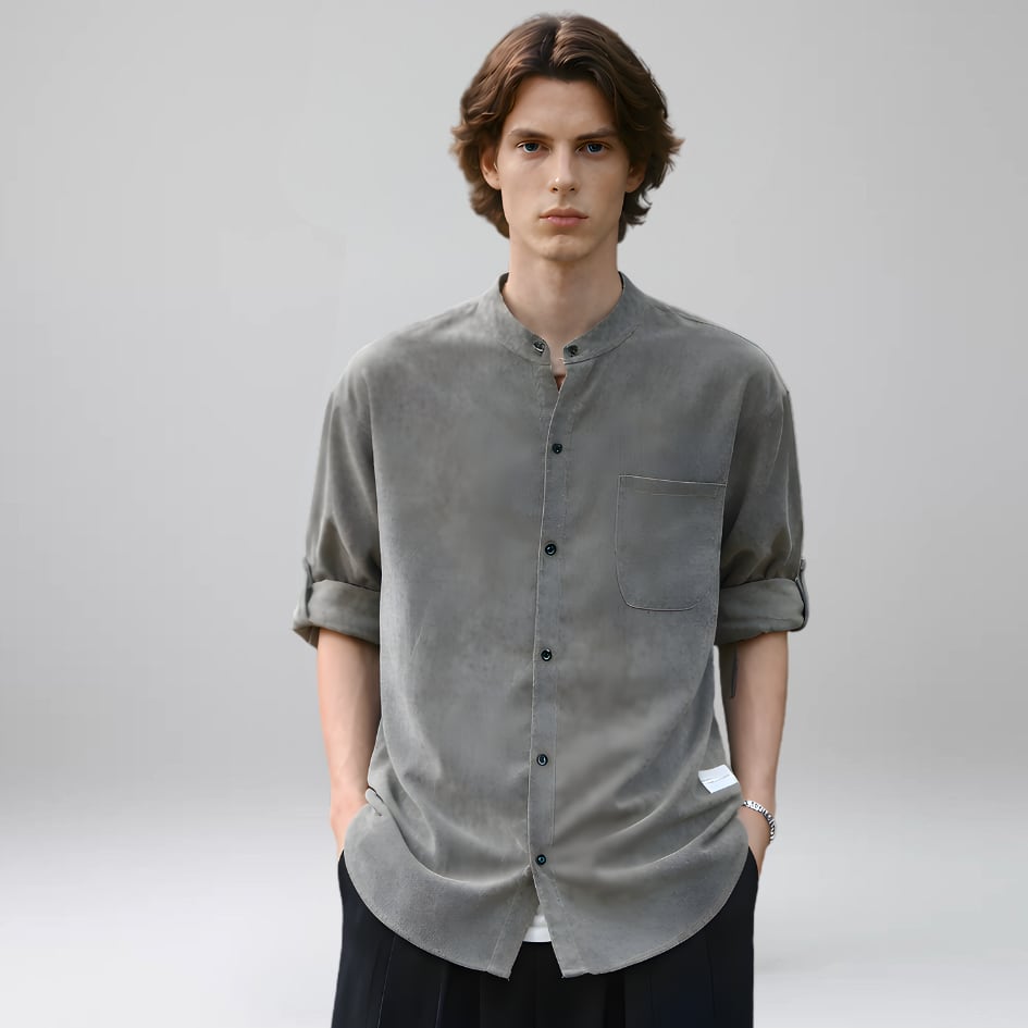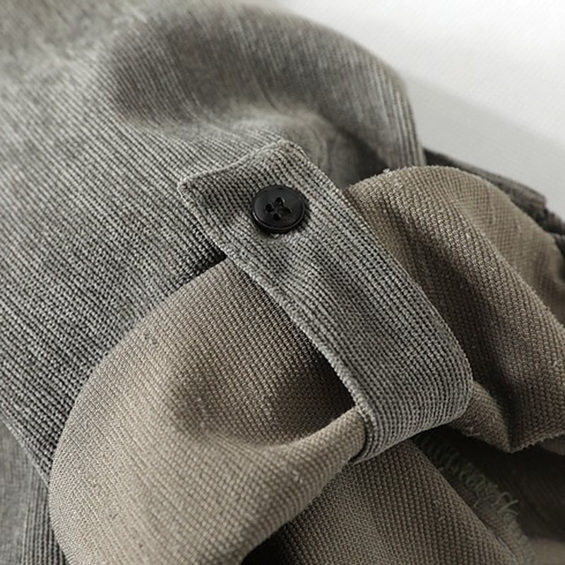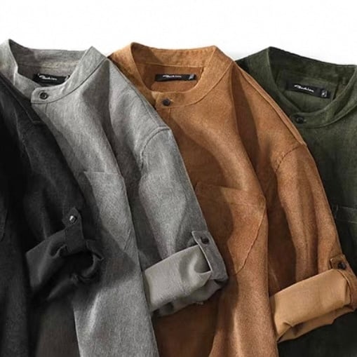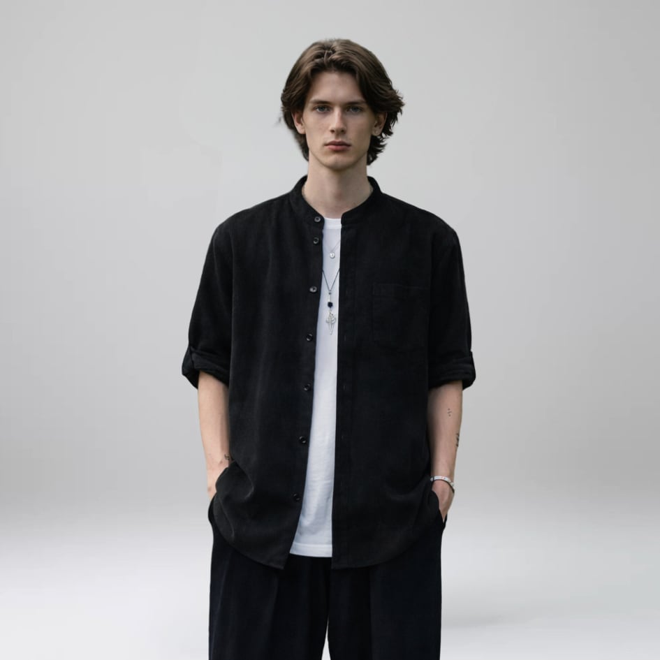 Corduroy Band Collar Three-Quarter Sleeve Shirt ◇4color H0438
