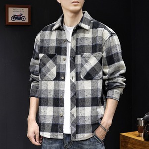 Check Plaid Button-Down Long Sleeve Shirt ◇2color H0474