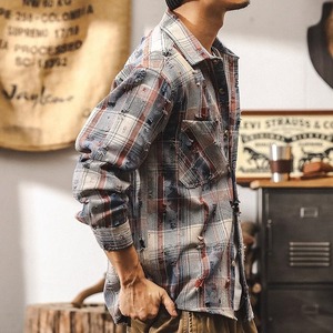Check Pattern Damaged Button-Down Shirt ◇2color H0516
