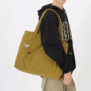 A4サイズの書類やファイルもすっぽり収納できるナイロン生地のトートバッグです。コンパクトながらも収納力があり、シンプルなデザインでどんなスタイルにも合わせやすく、使い勝手も抜群です。