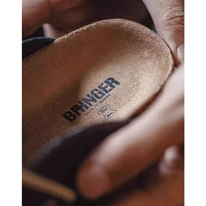 バックストラップと金属製のバックルがアクセントになり、シンプルなデザインながらも洗練された印象を与えます。