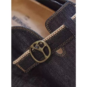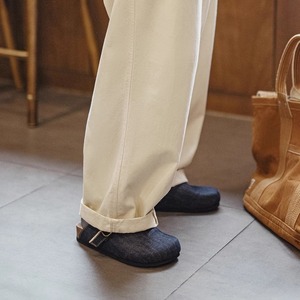 デニム素材のバックストラップクロッグは、カジュアルなスタイルにぴったりです。