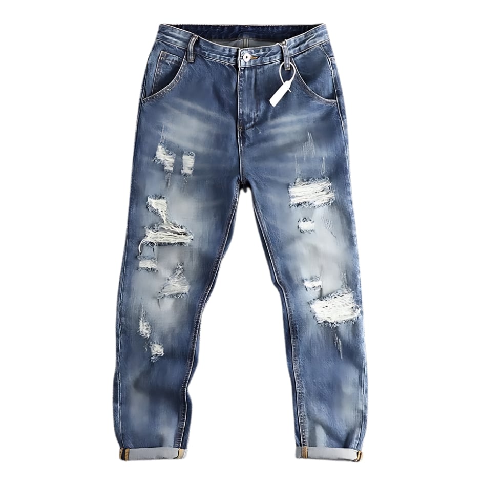 Men's Damaged Mid-Rise Straight Denim Pants ◇H0713