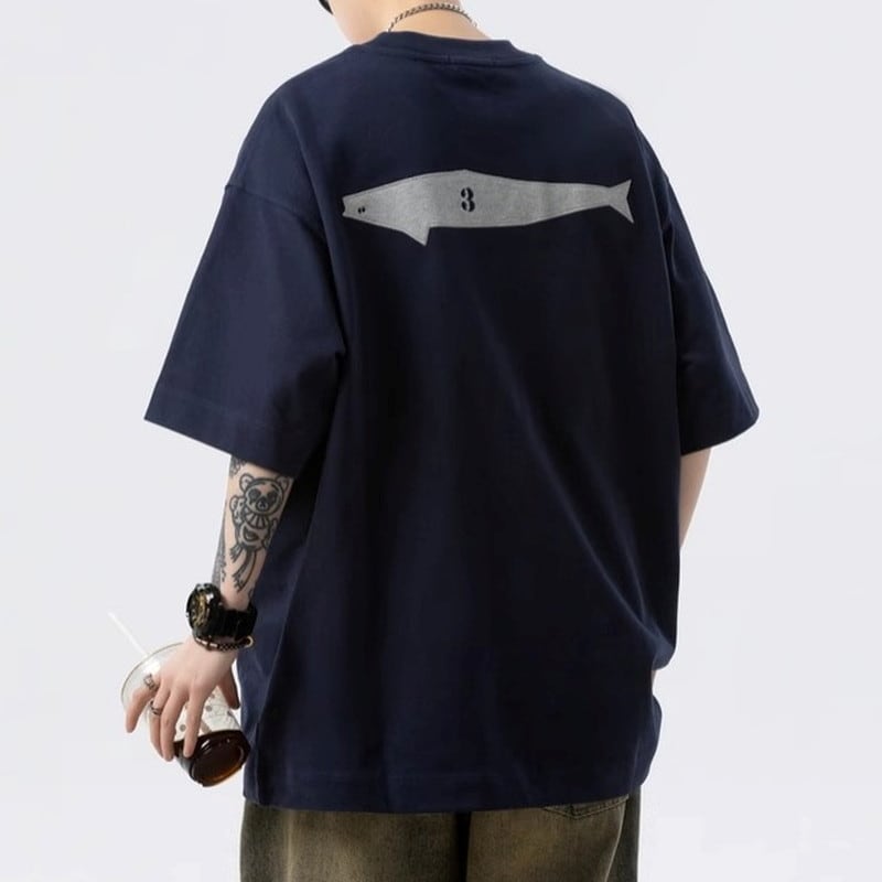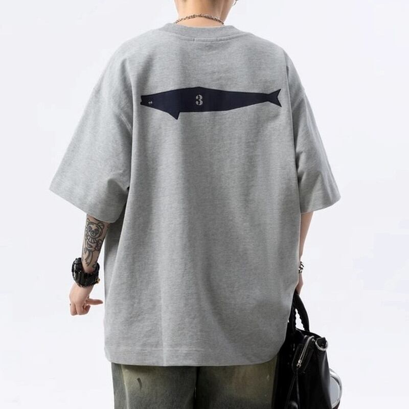 Back print oversized box silhouette short sleeve T-shirt ◇2color H0745
