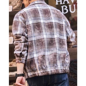 Flannel Check Pattern Zip-Up Shirt Jacket Stand Collar Regular Fit ◇2color H0749