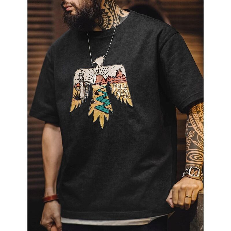 リラックス感のあるシルエットが魅力のクルーネックTシャツ。大胆なグラフィックがフロントに映え、シンプルながら存在感のある一枚に。でスタイリッシュな着こなしが楽しめます。