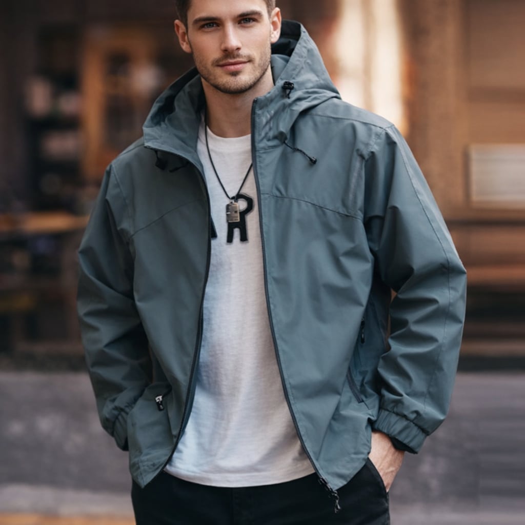 スタンドカラーのフルジップアップジャケットは、フード付きで様々なシーンで活躍します。すっきりとしたシルエットながら、動きやすさを考慮したデザインです。普段使いから軽いアウトドアまで幅広く対応できる、頼れる一着です。