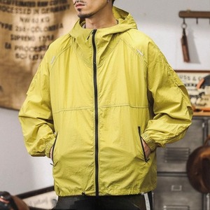 Nylon Material Hooded Long Sleeve Stand Collar Zip-Up Jacket ◇H0777