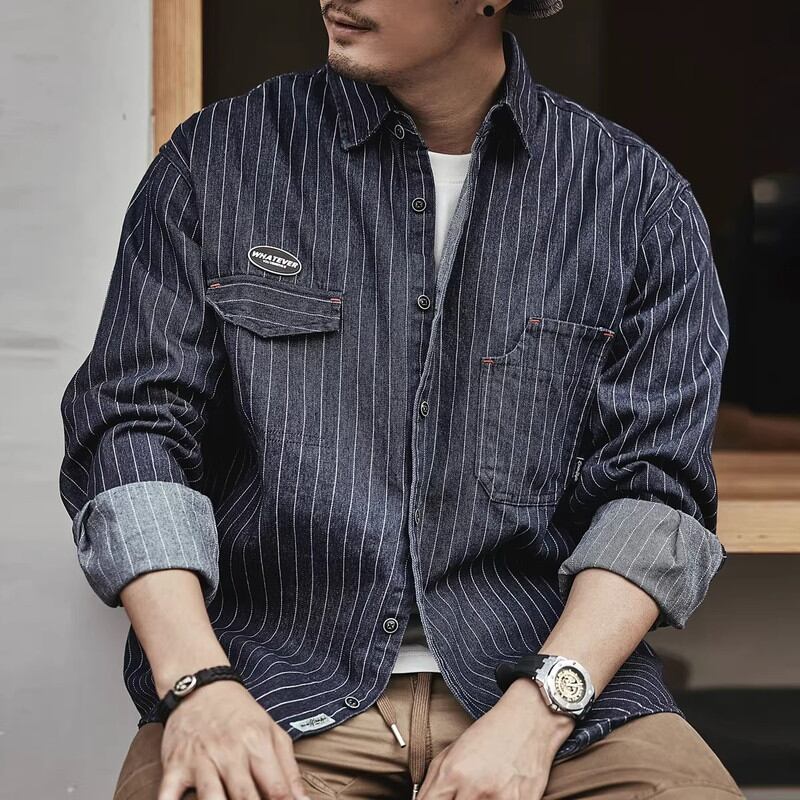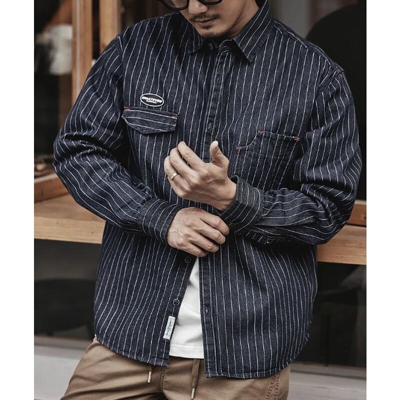 ストライプ柄がスタイリッシュなデニムシャツです。ボタンダウンのデザインと、さりげなく配置されたポケットが、カジュアルながらも洗練された印象を与えます。様々なスタイルに合わせやすく、着回し力抜群の一枚です。普段使いから、ちょっとしたお出かけまで幅広く活躍します。 ◇サイズ◇ M 肩幅50cm バスト102cm 着丈68cm 袖丈58cm L 肩幅51cm バスト126cm 着丈70cm 袖丈59cm XL 肩幅53cm バスト1110cm 着丈72cm 袖丈60cm 2XL 肩幅54cm バスト13114m 着丈74cm 袖丈61cm 3XL 肩幅56cm バスト118cm 着丈75cm 袖丈62cm ※採寸方法により約1‐3cm程度誤差が生じる場合がございます。 ◇カラー◇ ブルー/ブラック ◇素材◇ コットン Instagramはコチラ▼ https://www.instagram.com/hikeoutdoor.official HIKE人気アイテムはコチラ▼ https://shop.hike333.shop/categories/6413735 Shop top pageはコチラ▼ https://shop.hike333.shop/ 【ご購入前に必ず、こちらをお読みください】 https://shop.hike333.shop/about 【注意事項】 ・ご購入後商品の在庫切れにより欠品のご案内を差し上げることがございます。予めご了承ください。 ・ご覧いただいているPCやスマートフォンの画面により実物と多少色合いが異なる場合がございます。 ご了承くださいませ。 ・イメージ違いやサイズ交換等、お客さまご都合による交換、返品は対応出来かねます。 【お届けについて】 ・HIKEはお客様からのご注文を受け、1点1点お客様の商品を製作、取り寄せさせていただいております。 その為ご入金から2週間~4週間前後でお届け致します。 ・ご注文の混雑状況や商品の在庫状況により、4週間以上かかる場合もございますので予めご了承ください。 その際にはメールにてご連絡をさせて頂きます。 【梱包について】 ・環境に配慮し、簡易包装にてお届けさせて頂いております。 ご理解の程宜しくお願い致します。