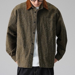 襟の配色デザインが目を引く長袖シャツ。一枚での着用はもちろん、Tシャツの上に羽織ってライトアウターとしても活躍します。ヒップが隠れる丈感で、体型カバーも期待できます。