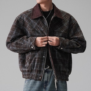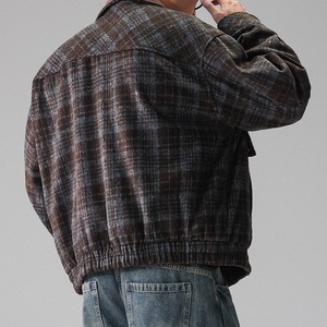 落ち着いた色合いのチェック柄が特徴のブルゾンジャケットです。
