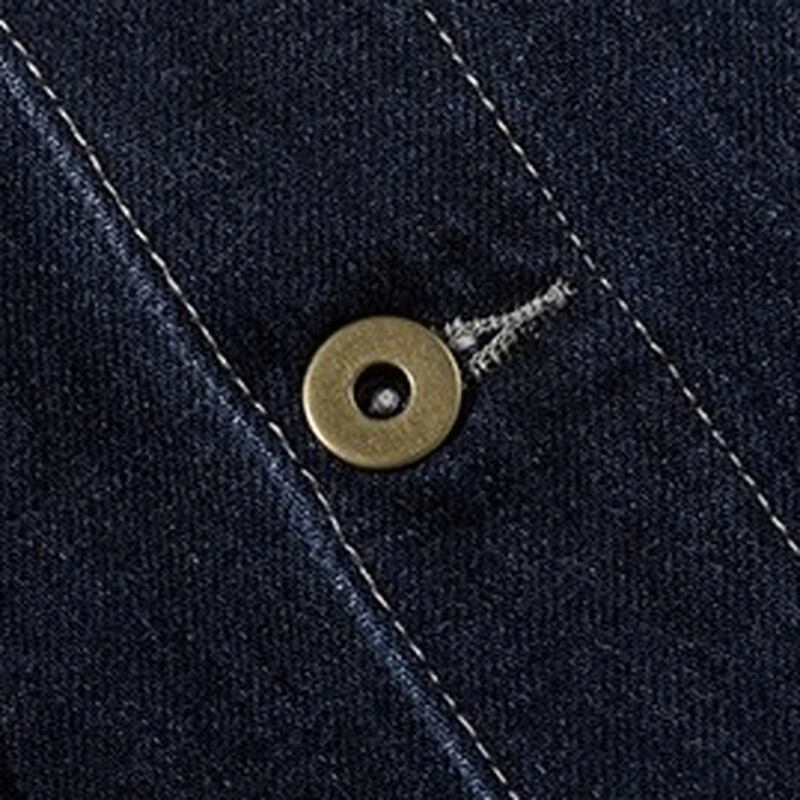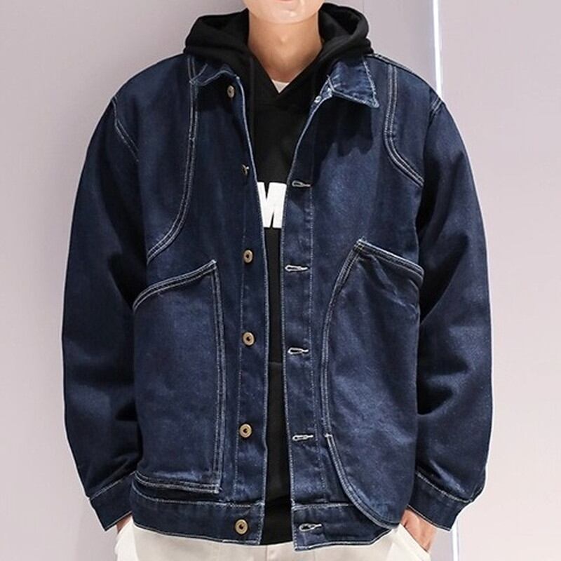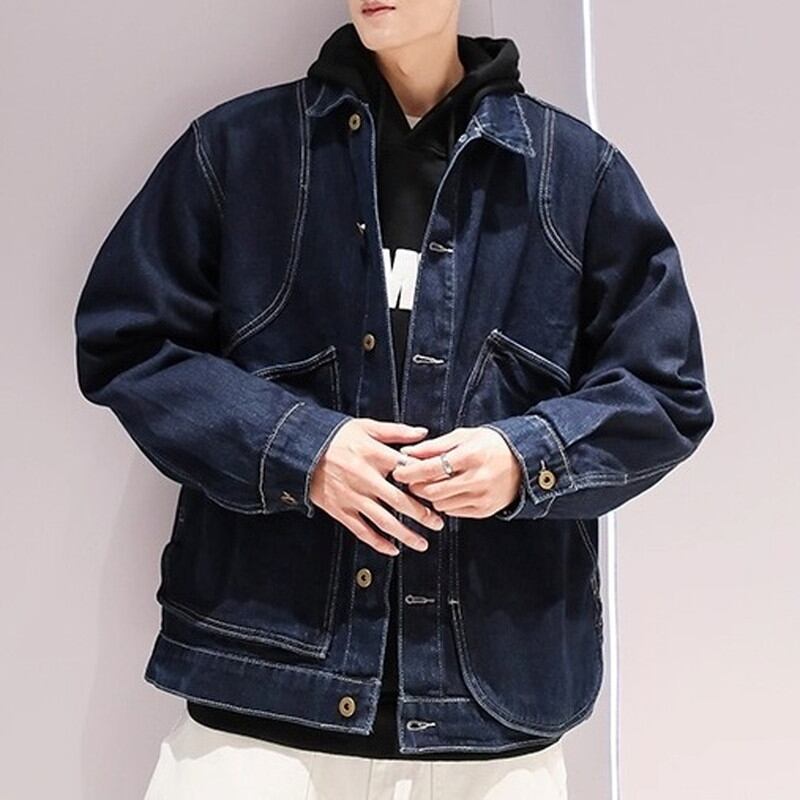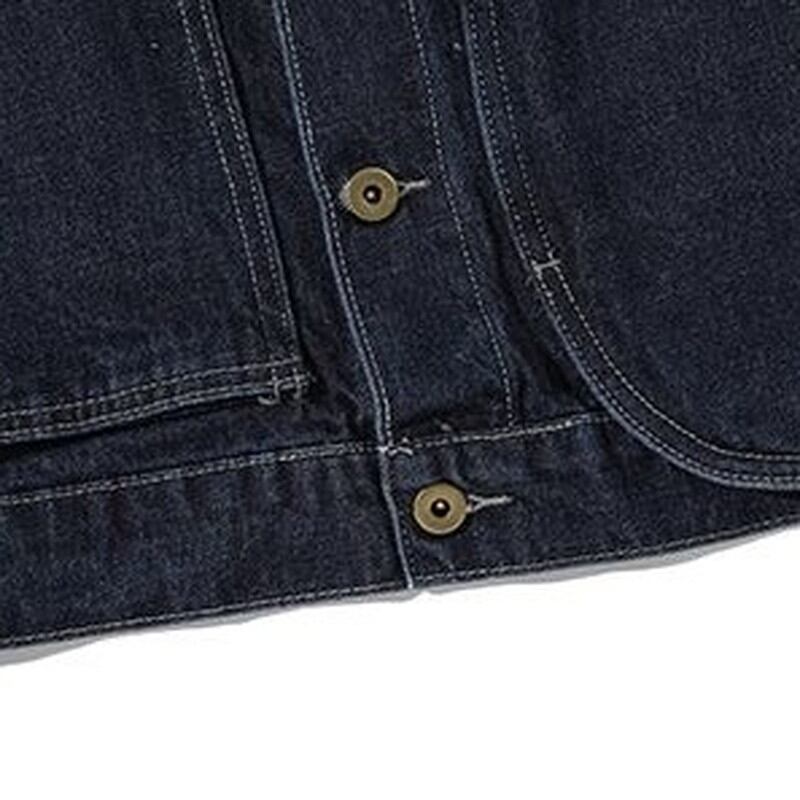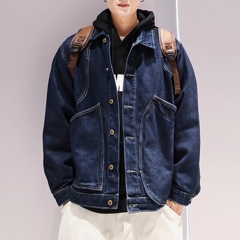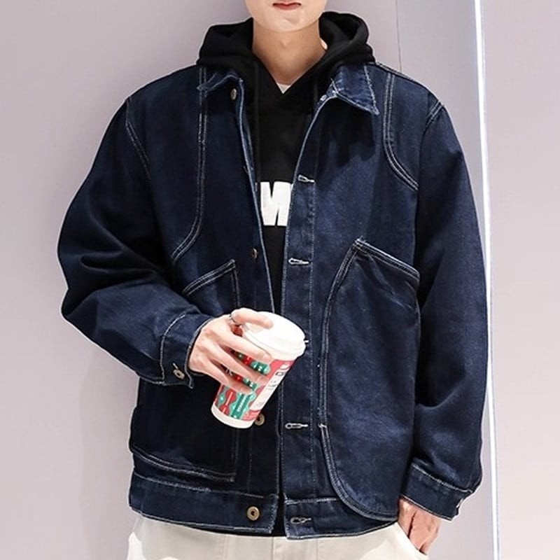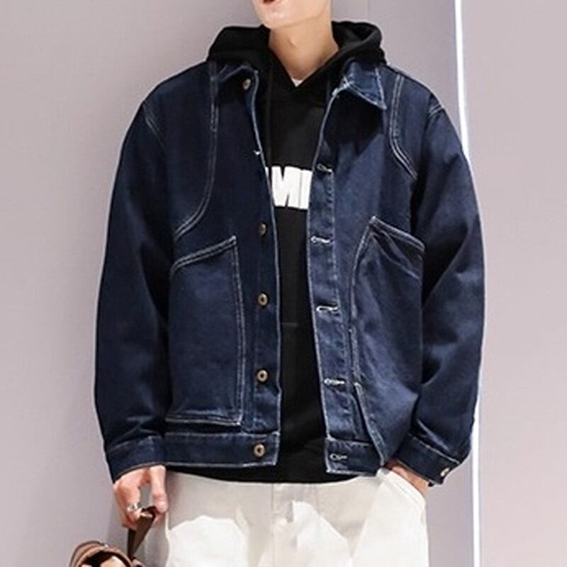 ボタンフロントのデニムジャケットは、カジュアルな着こなしに最適です。