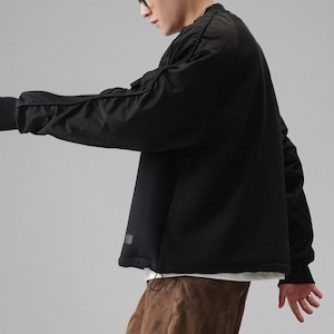 異素材の切り替えが特徴的な長袖スウェットシャツです。