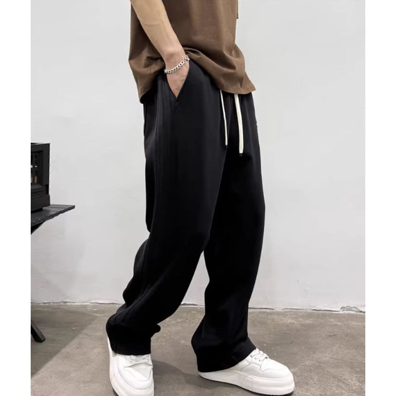 Drawstring Full-Length Wide Sweat Pants ◇2color H1014