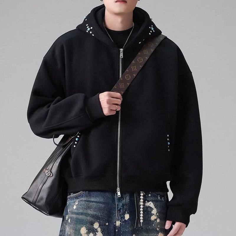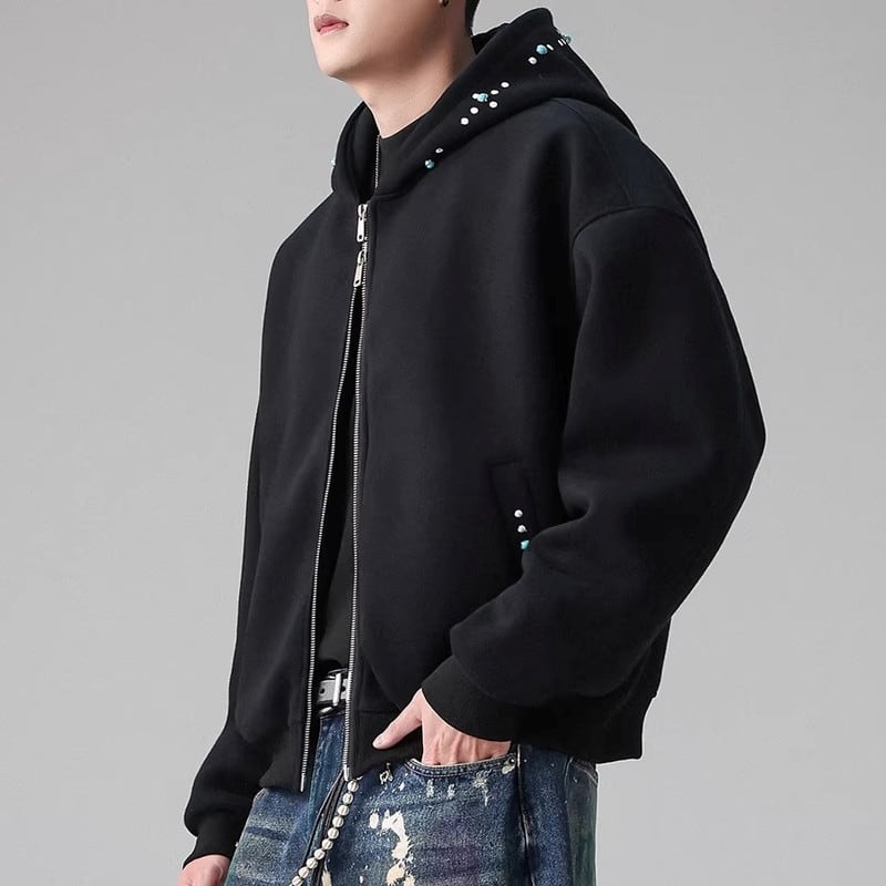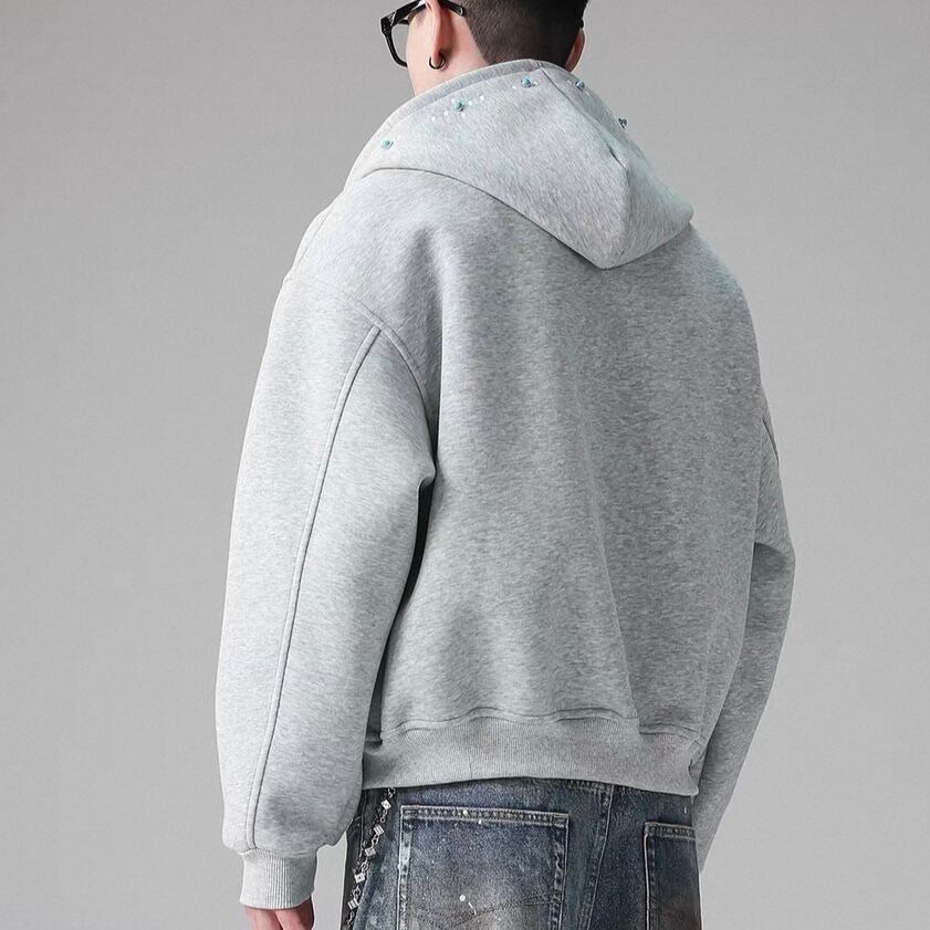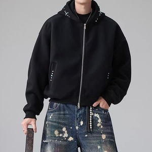 ゆったりとしたオーバーサイズシルエットで、カジュアルな着こなしにぴったりのフルジップパーカー。クロップド丈なので、スタイルアップ効果も期待できます。普段使いはもちろん、ちょっとしたお出かけにも活躍する一枚です。