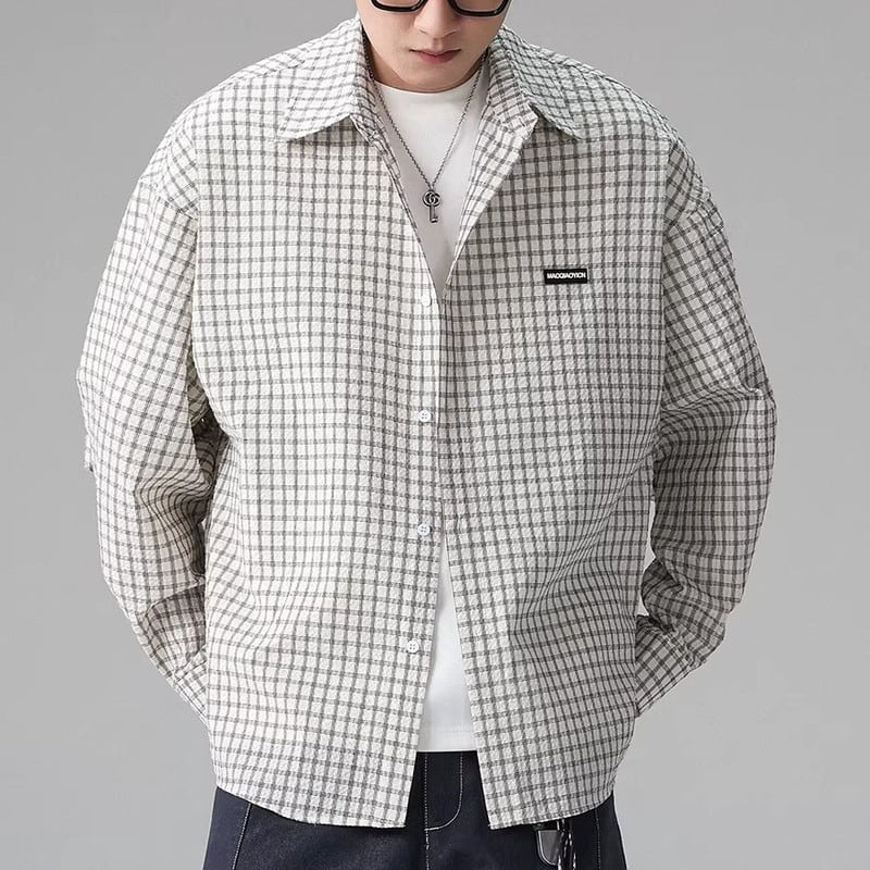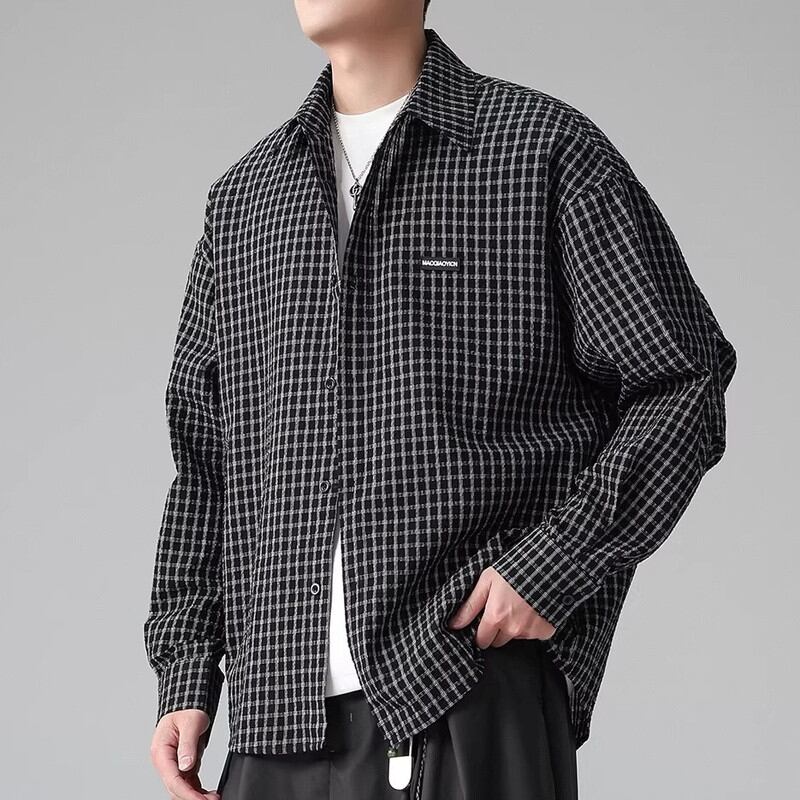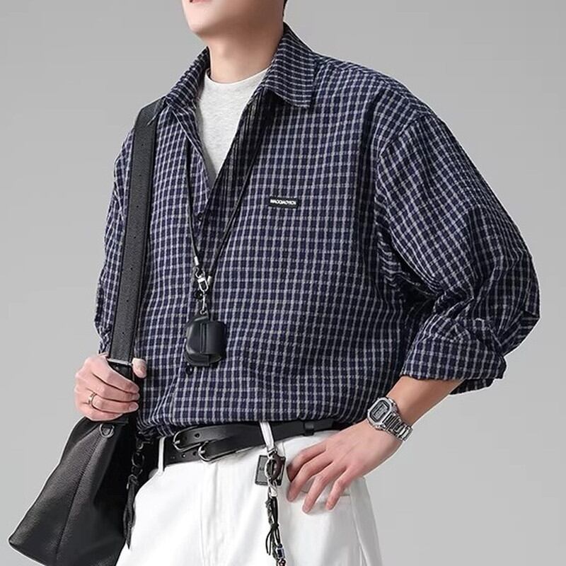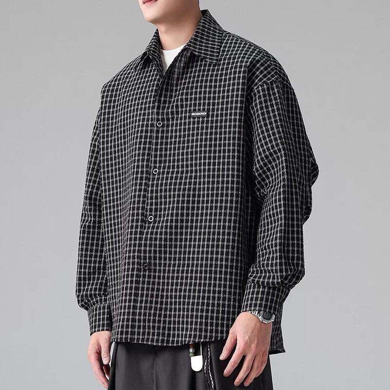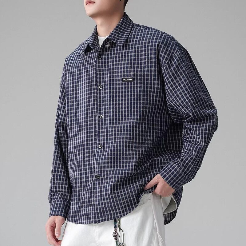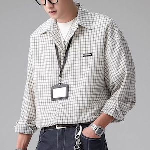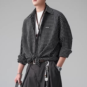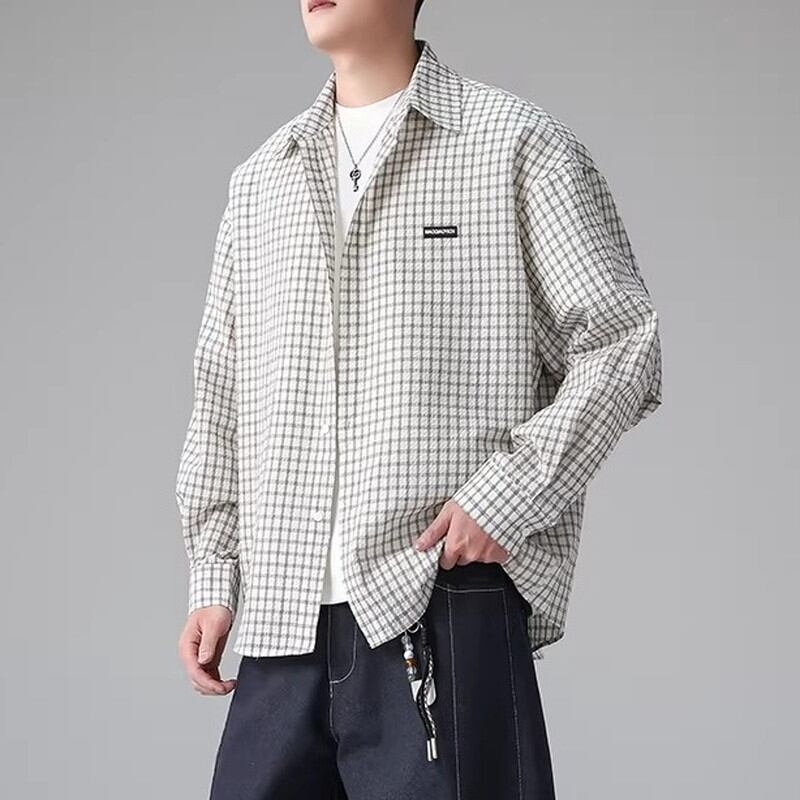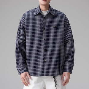 ゆったりとしたチェック柄の長袖シャツ。カジュアルな着こなしに最適で、インナーにTシャツを合わせたり、軽く羽織ったりと、様々なスタイルを楽しめます。襟付きなので、きちんと感も演出でき、普段使いにもおすすめです。