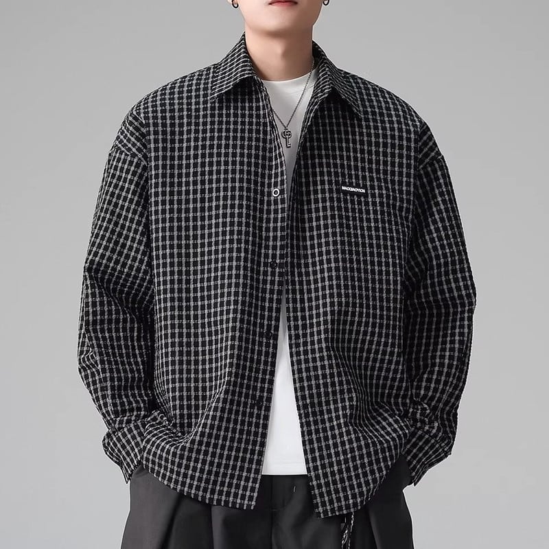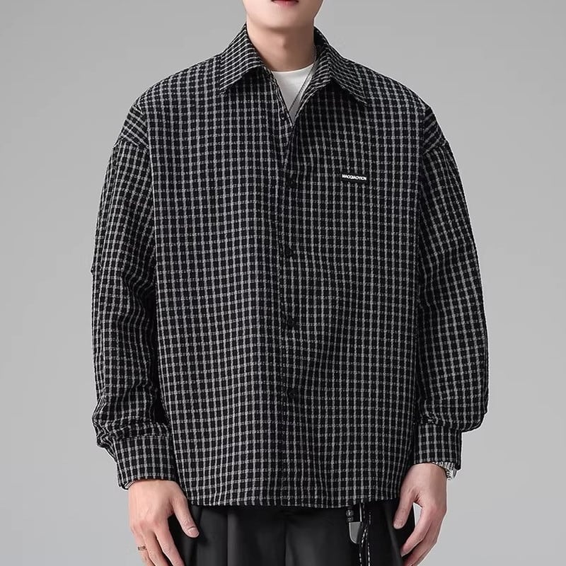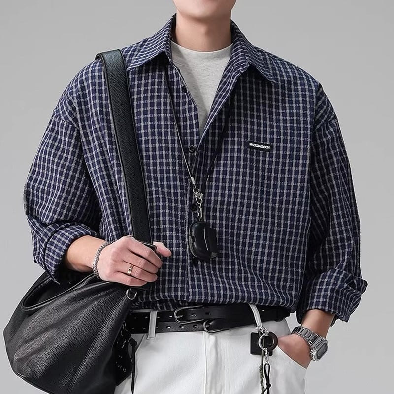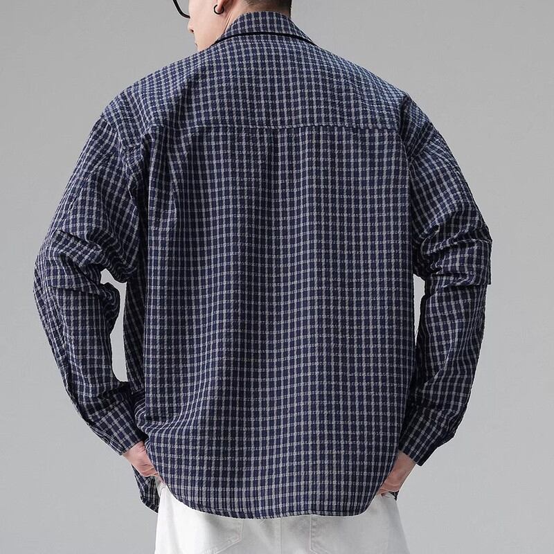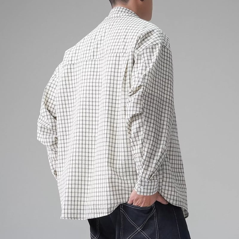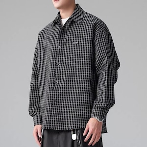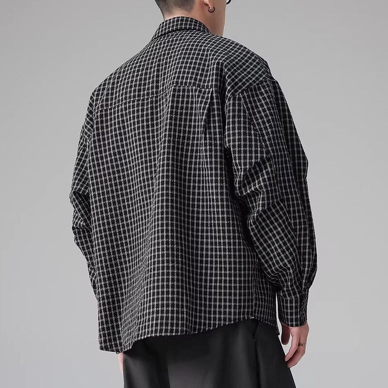ゆったりとしたチェック柄の長袖シャツ。カジュアルな着こなしに最適で、インナーにTシャツを合わせたり、軽く羽織ったりと、様々なスタイルを楽しめます。襟付きなので、きちんと感も演出でき、普段使いにもおすすめです。