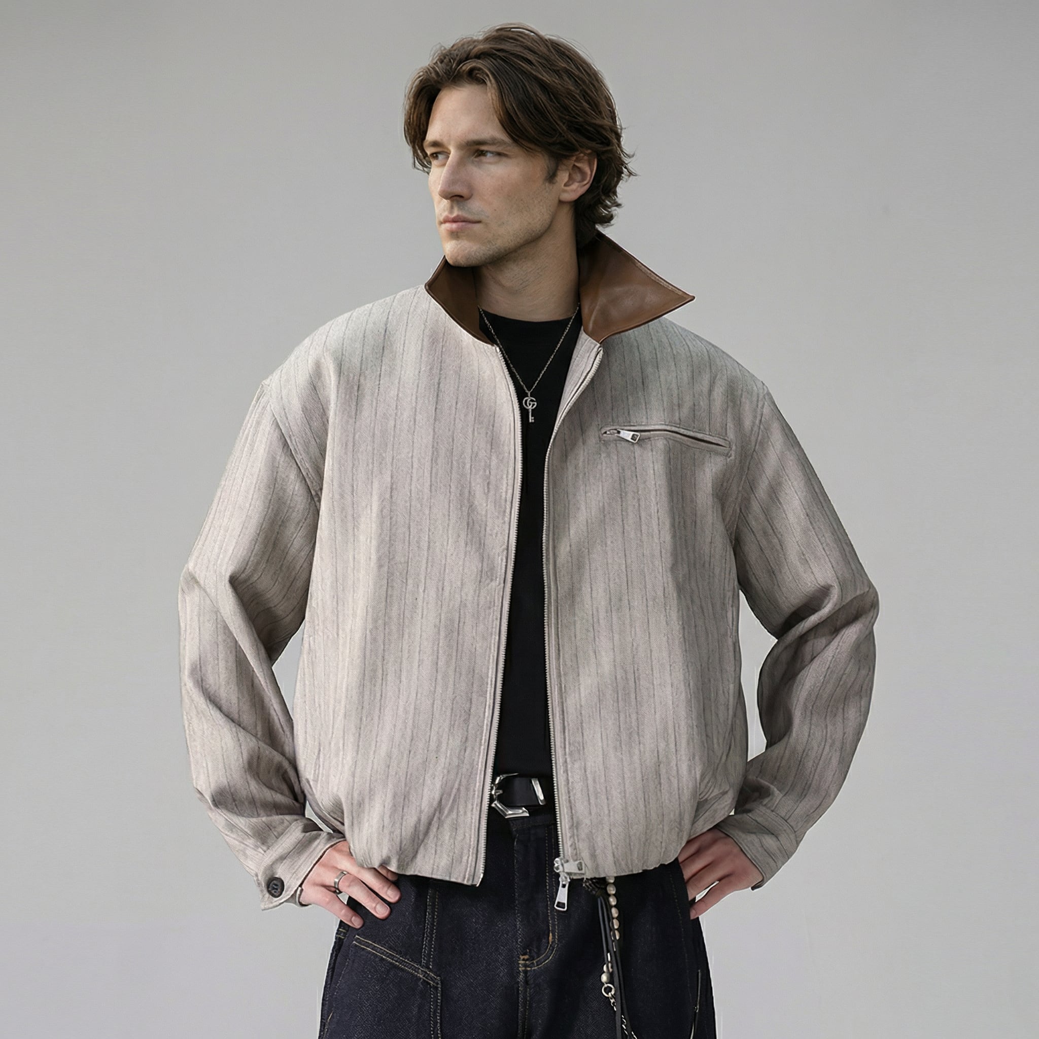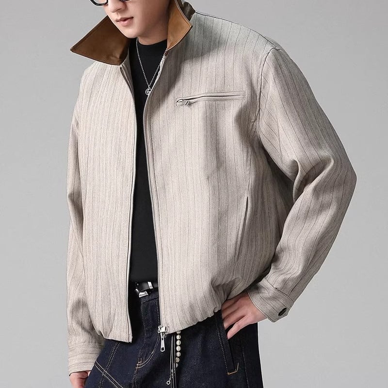 襟の切り替えがさりげない品格を添える、ジップアップジャケット。ヒップが隠れる端正な丈感でシルエットを整え、羽織るだけで“大人のきちっと感”を演出します。ニュアンスのあるホワイトが清潔感を引き立て、デニムはもちろんスラックスとも好相性。普段使いからデート、少し改まった外出までスマートに対応する一着です。