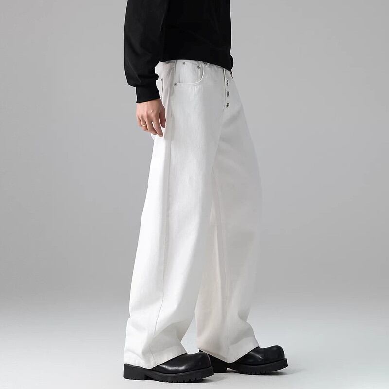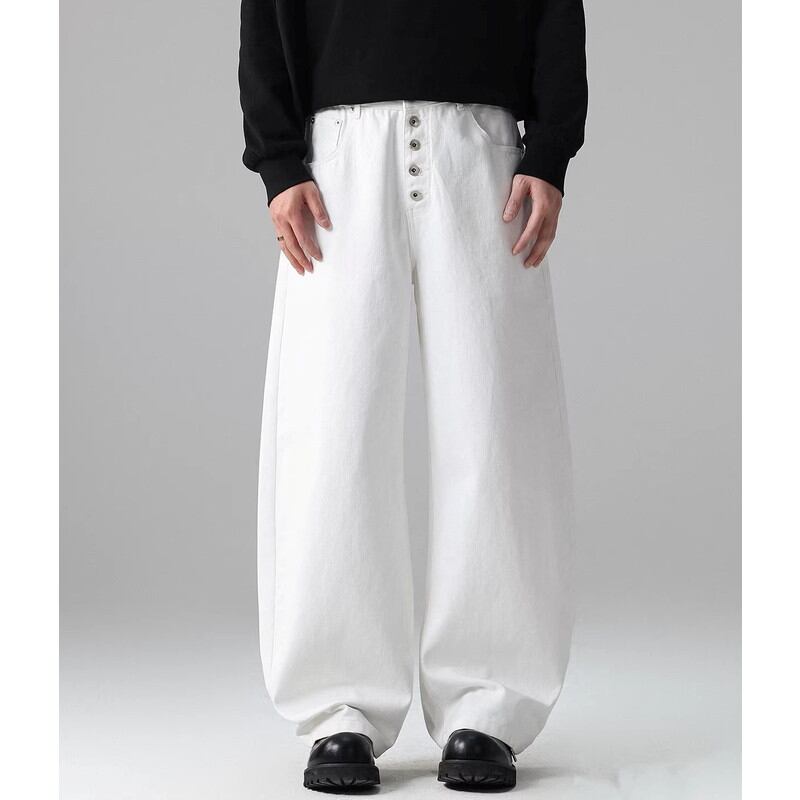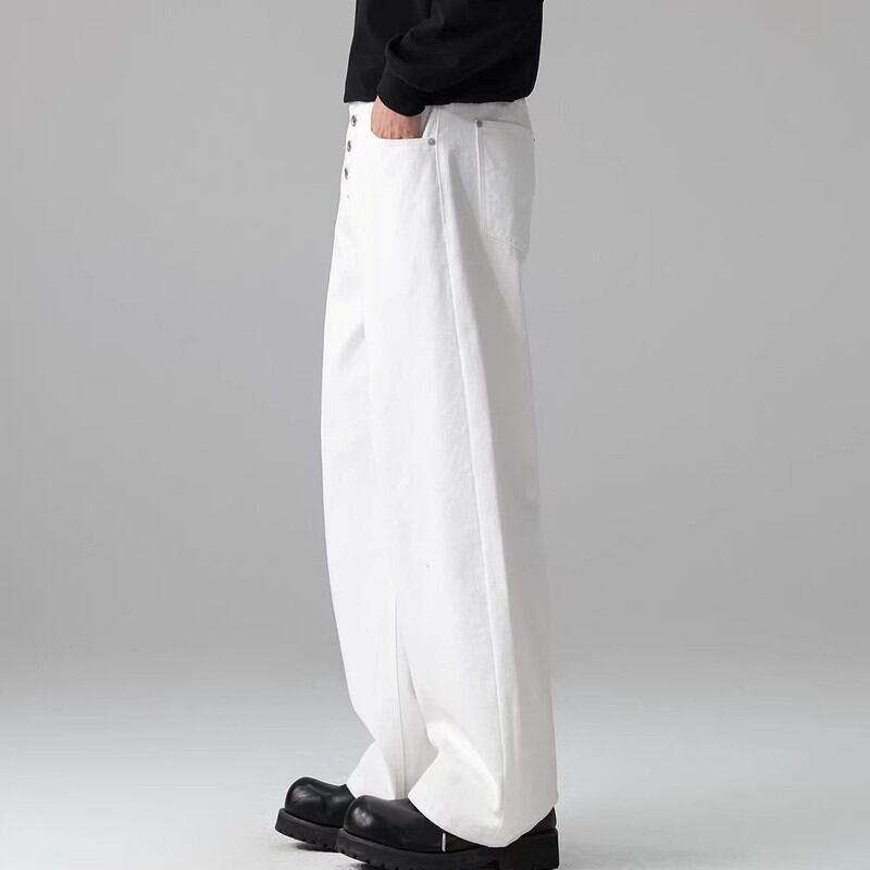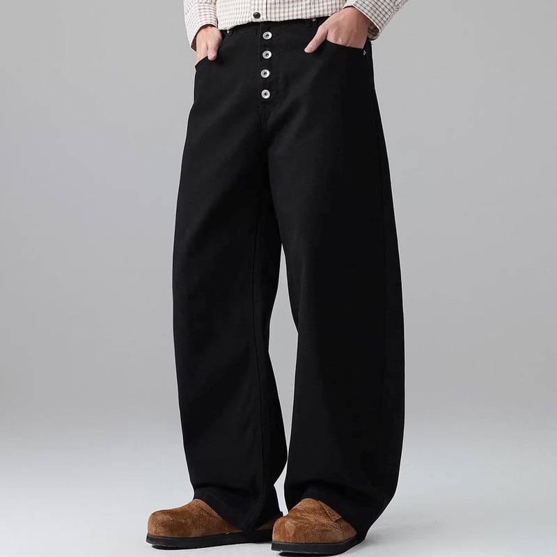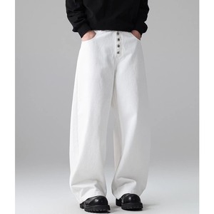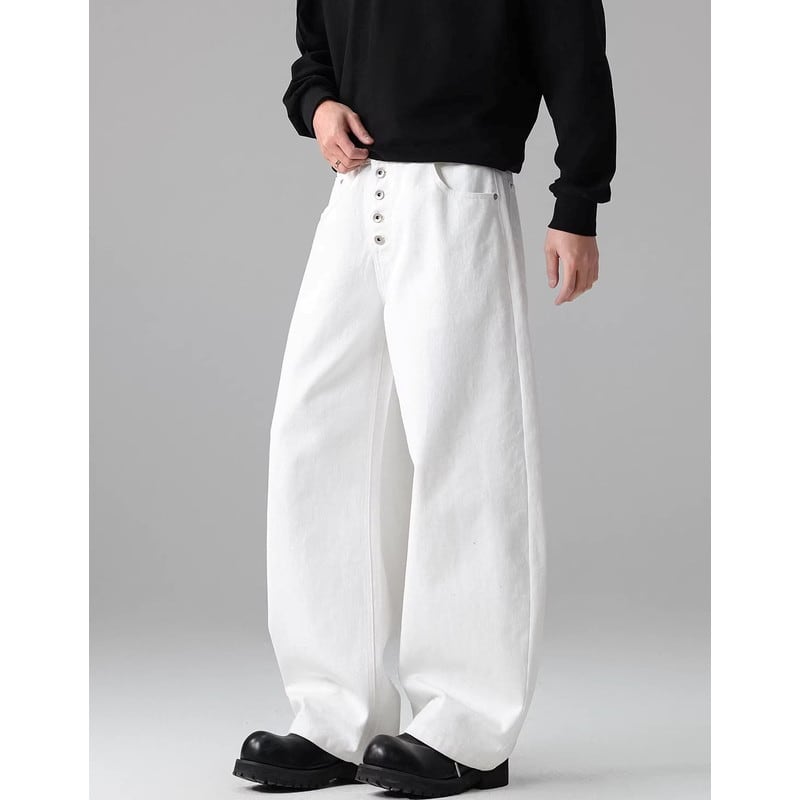 ボタンフロントが特徴的なワイドレッグパンツ。