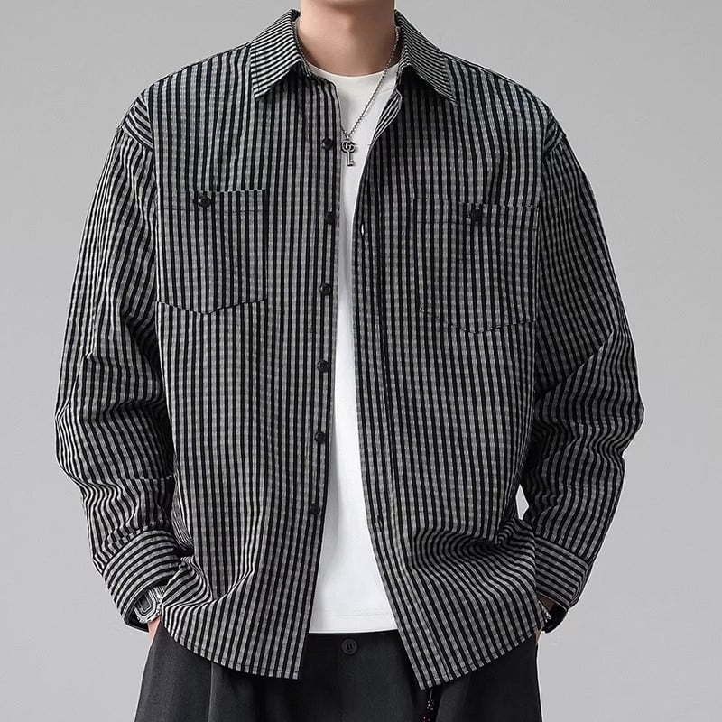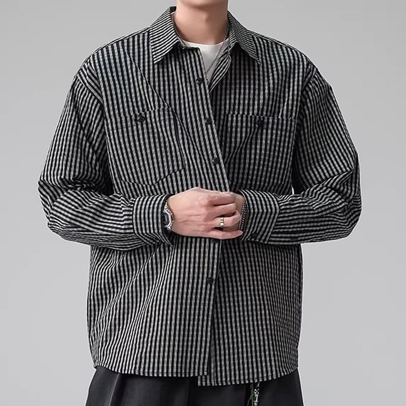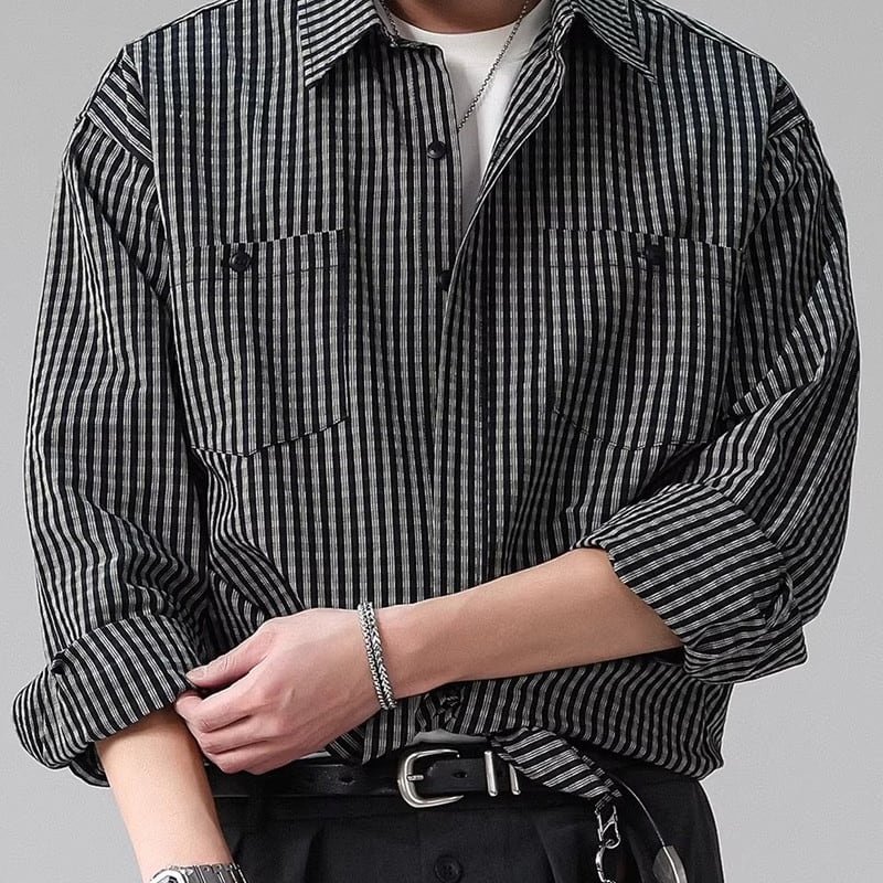 カジュアルに着こなせるストライプ柄の長袖シャツです。ヒップが隠れる丈感で、体型カバーにも役立ちます。普段使いはもちろん、アウトドアシーンにもおすすめです。