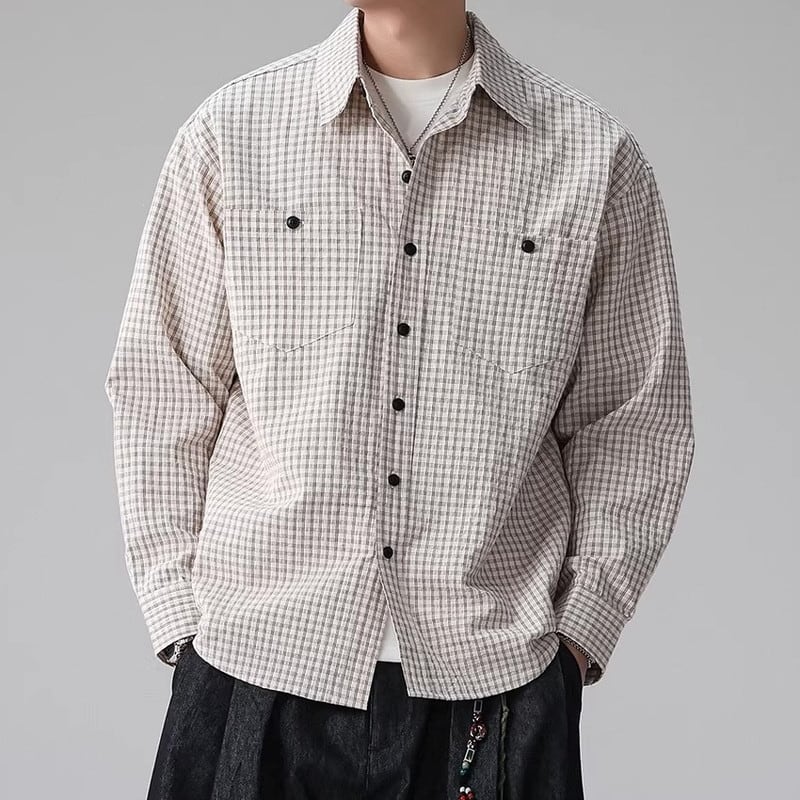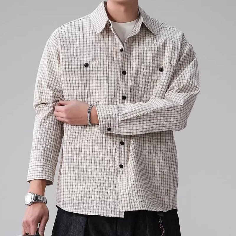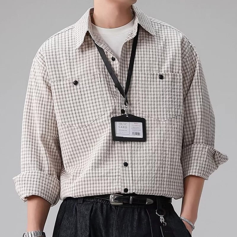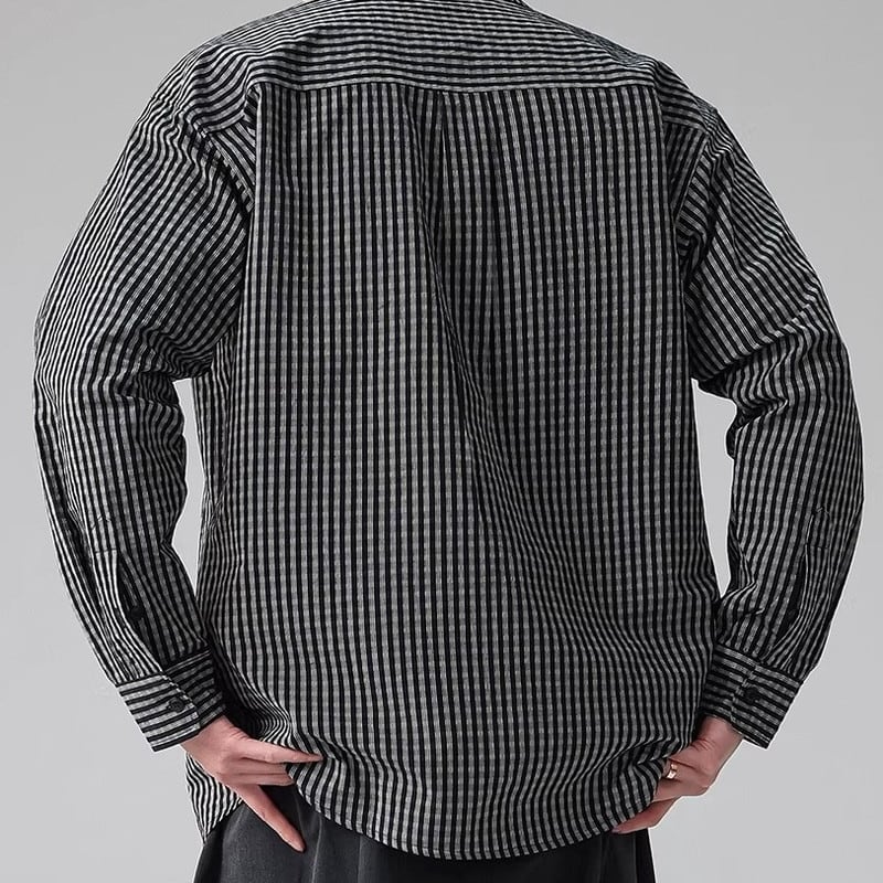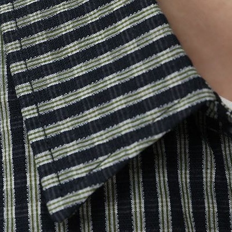 shirt color long-sleeve striped hip-length shirt ◇2color H1042