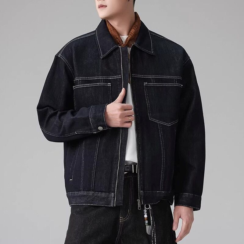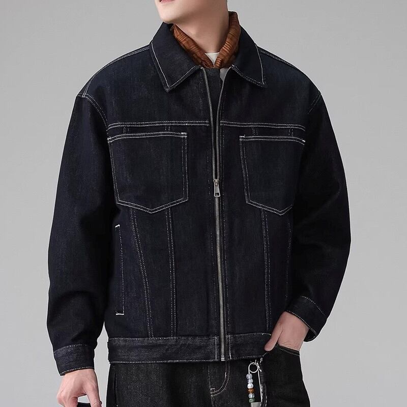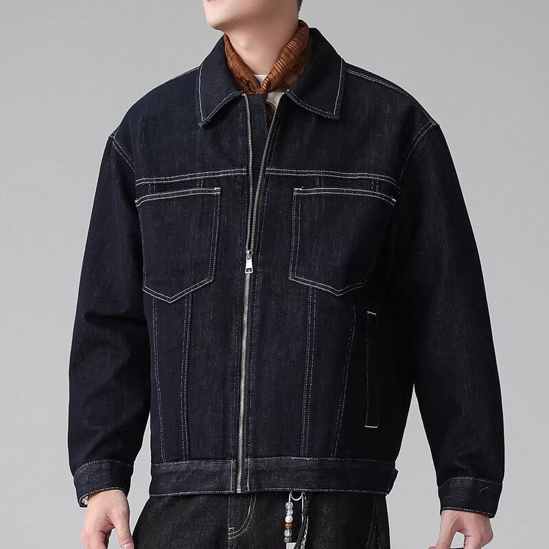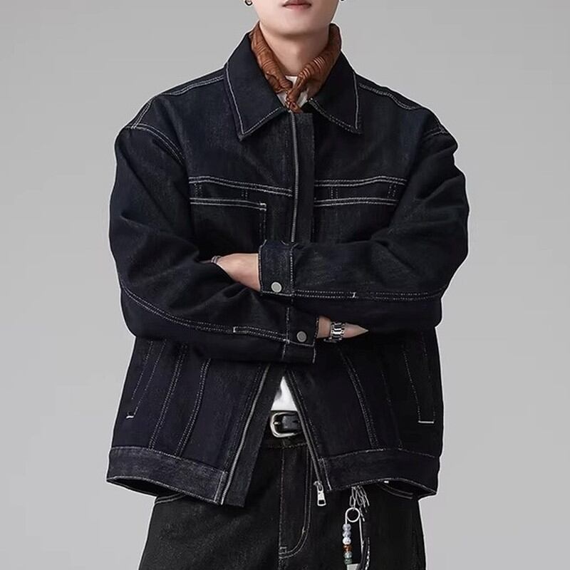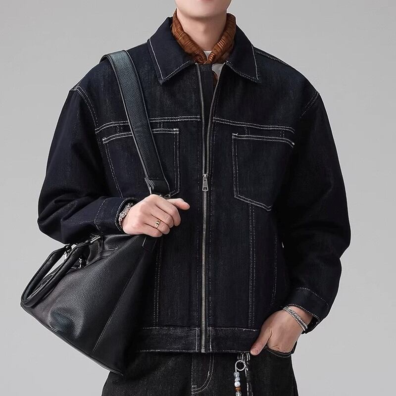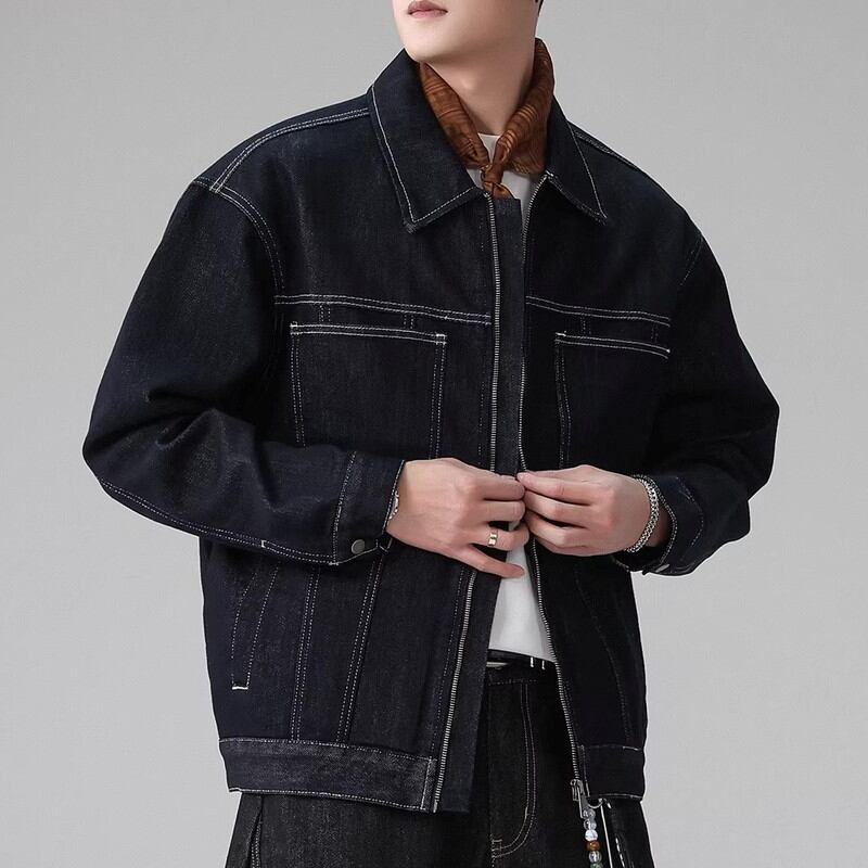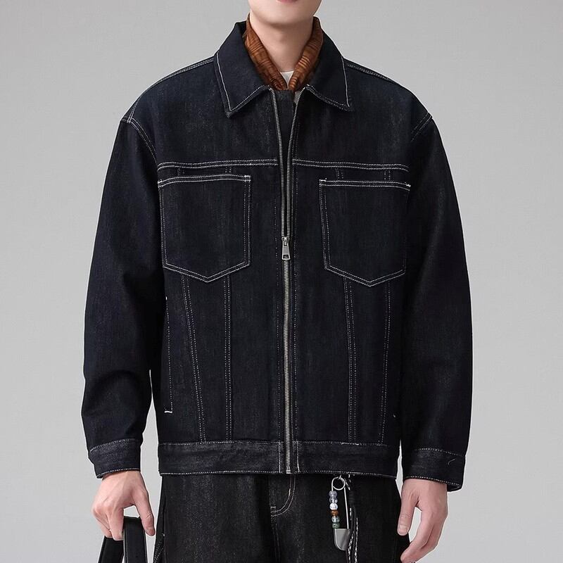Zip-up waist-length long-sleeve denim jacket ◇H1033