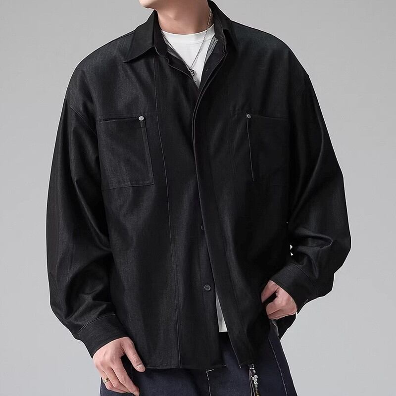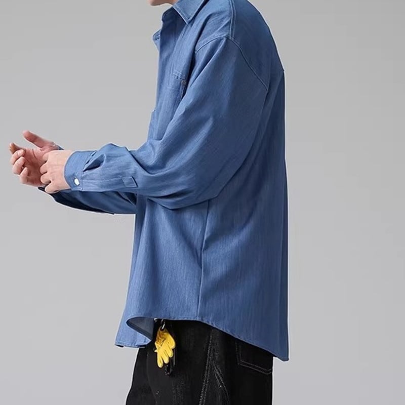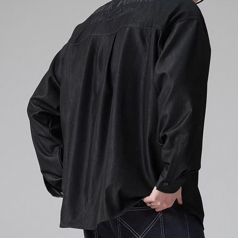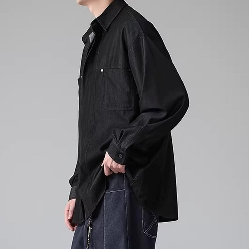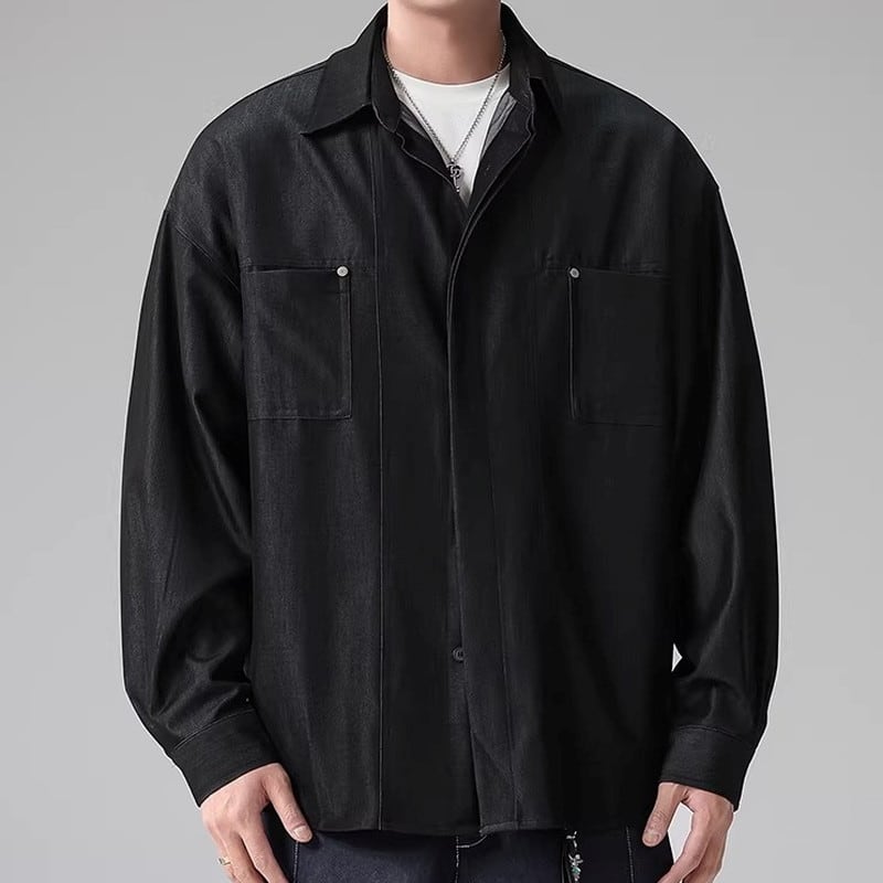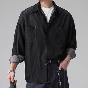Button Front Hip-Length Long Sleeve Shirt ◇2color H1043