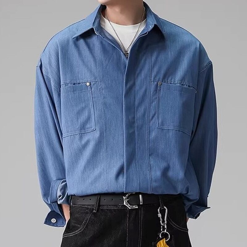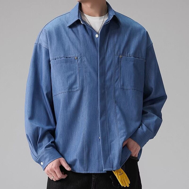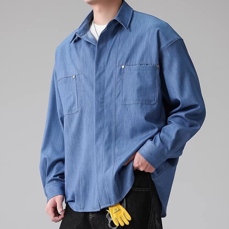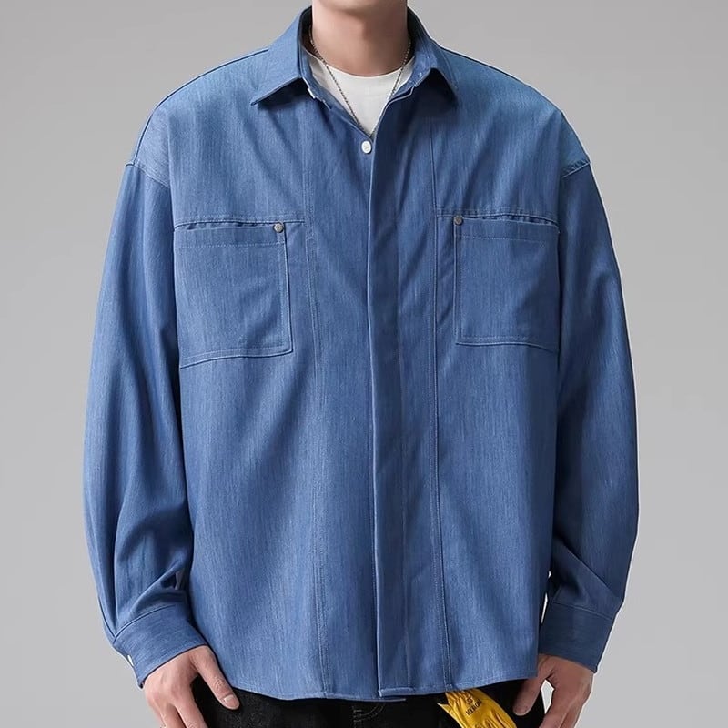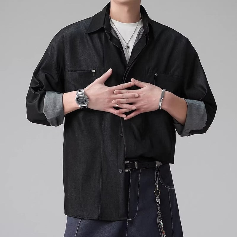 Button Front Hip-Length Long Sleeve Shirt ◇2color H1043