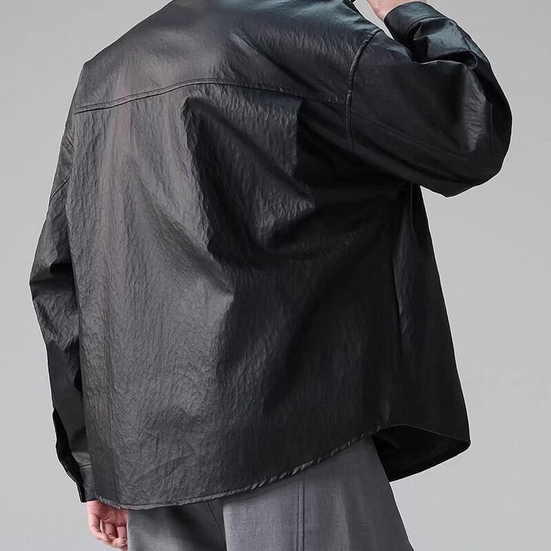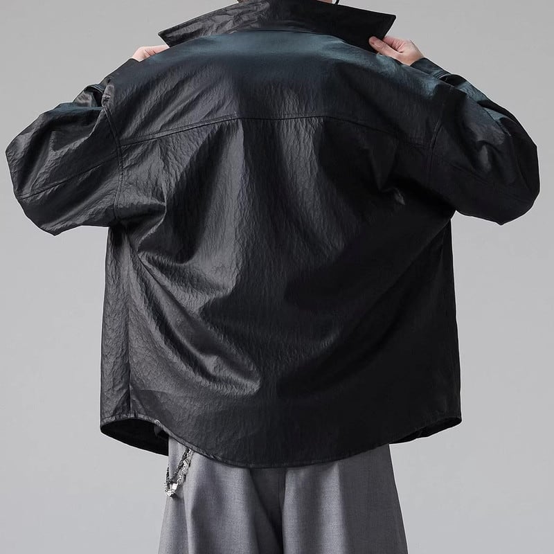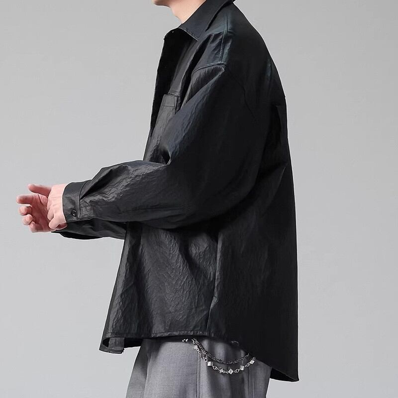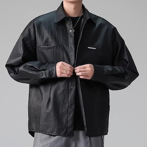 shirt color hip-length long sleeve button front shirt ◇H1044