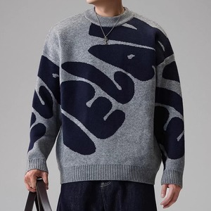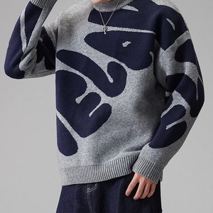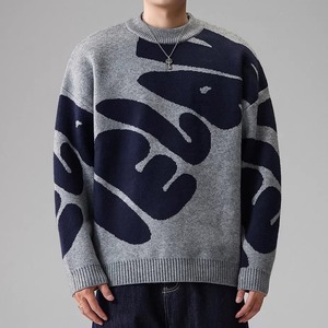 long sleeve big pattern crew neck knit ◇2color H1048