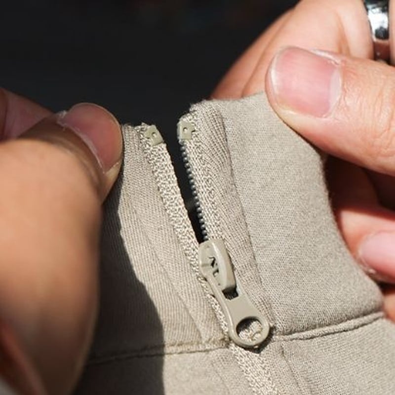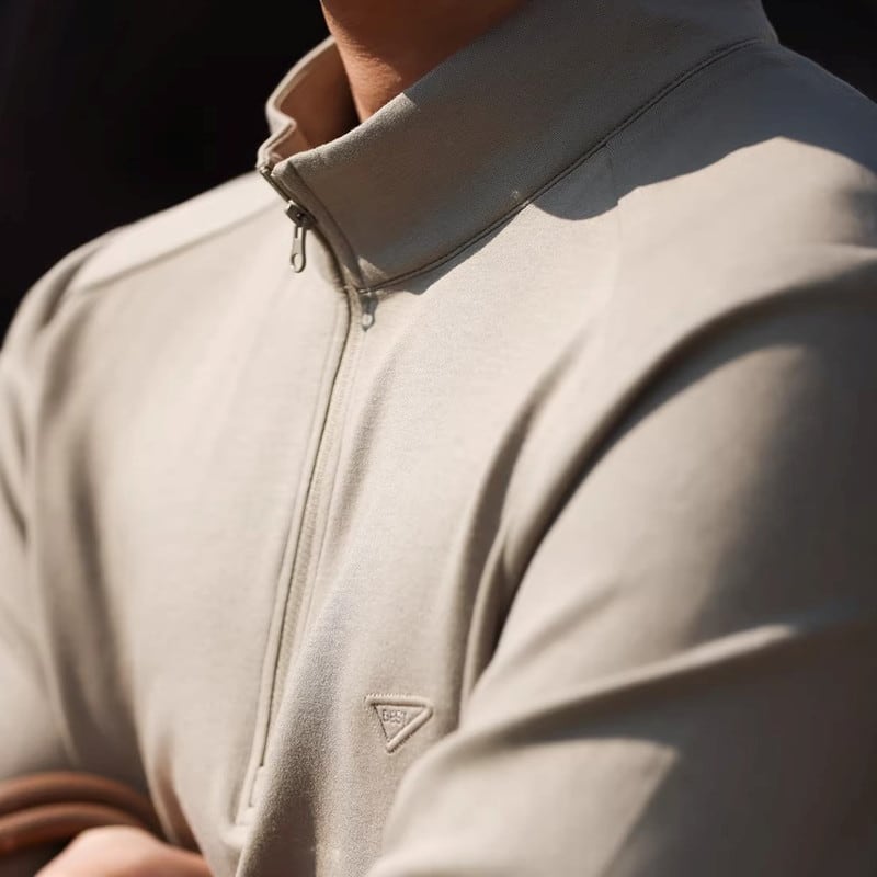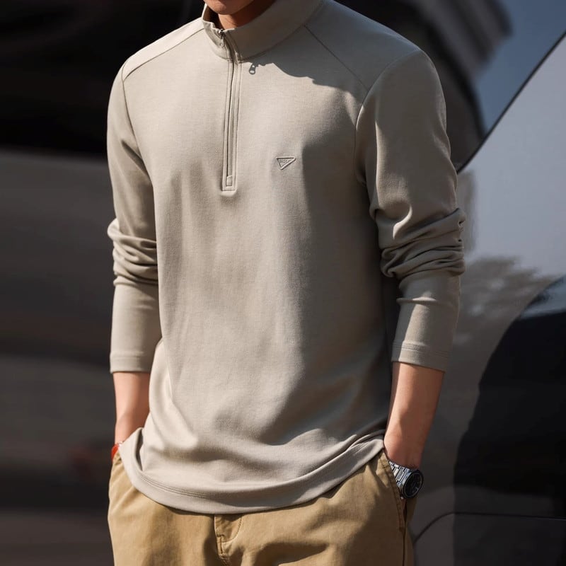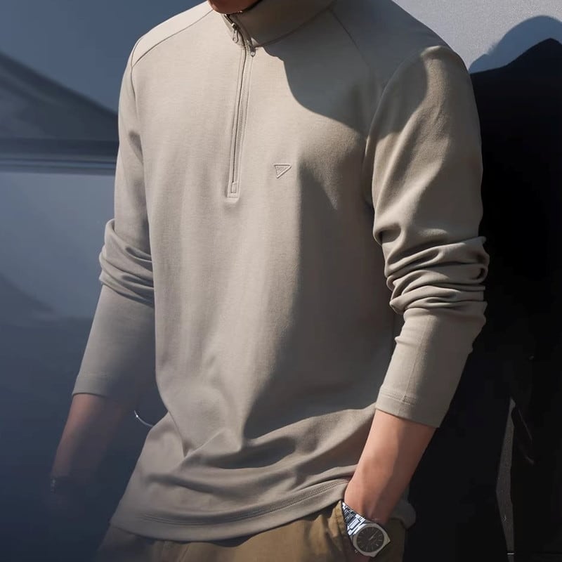 ハーフジップが特徴的な長袖Tシャツ。
