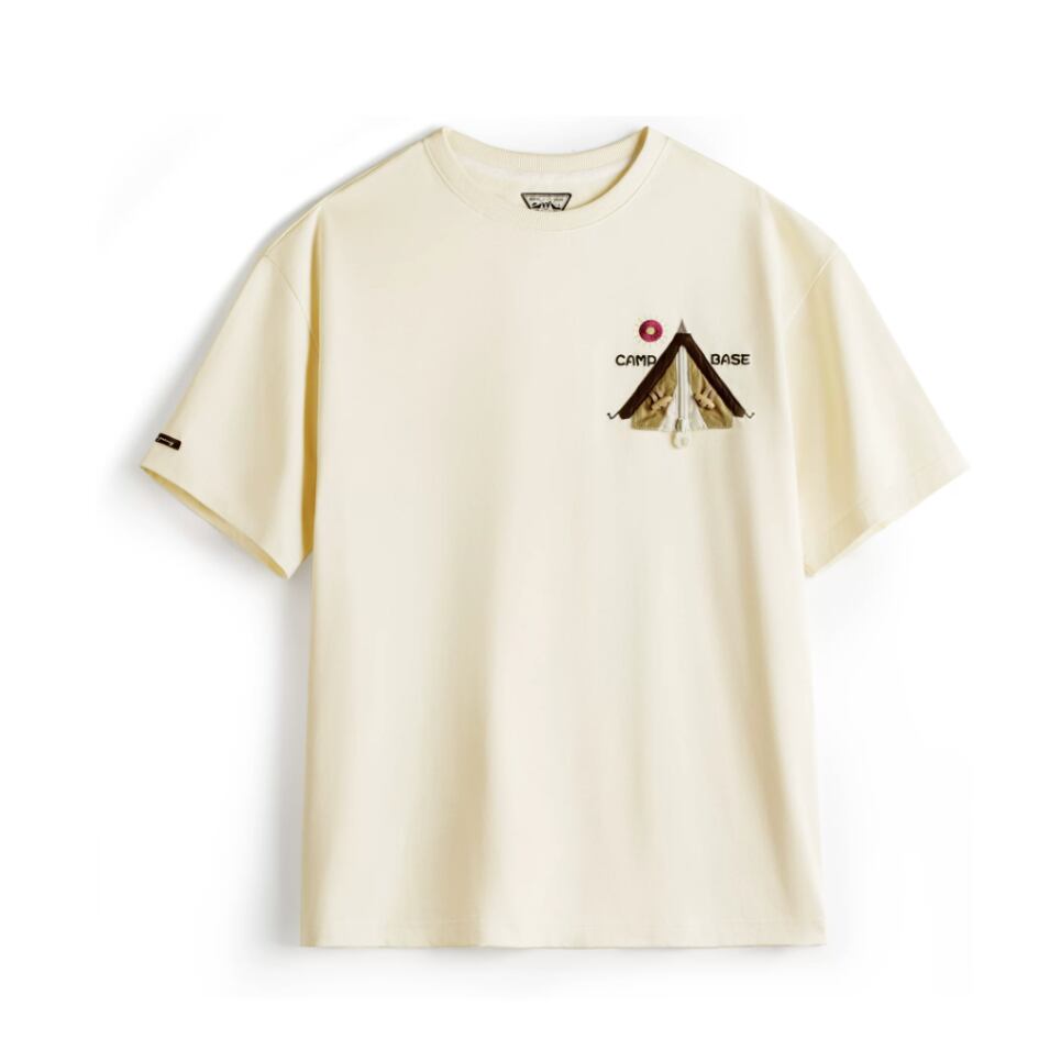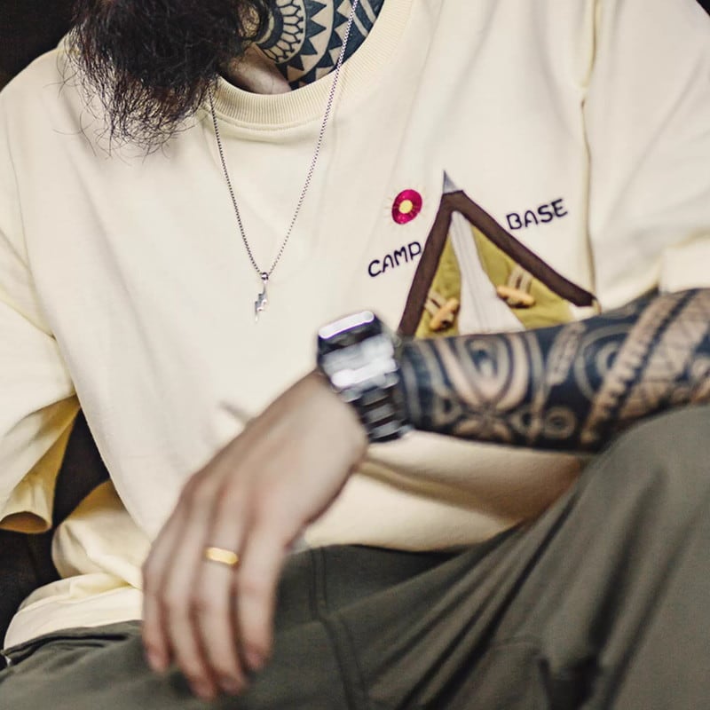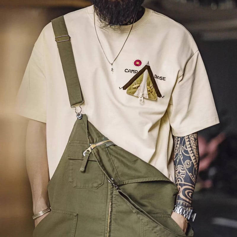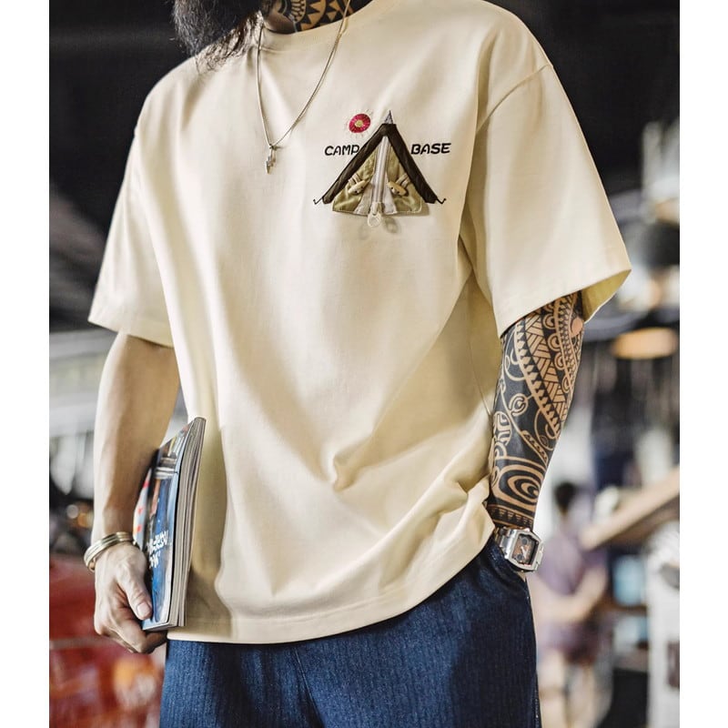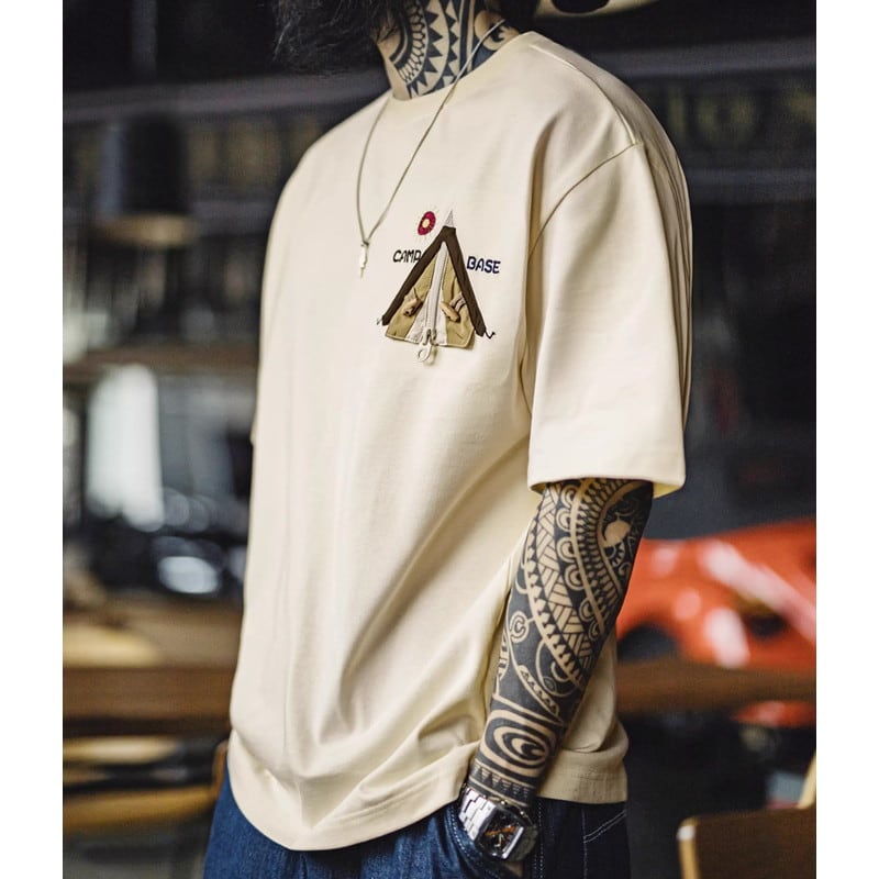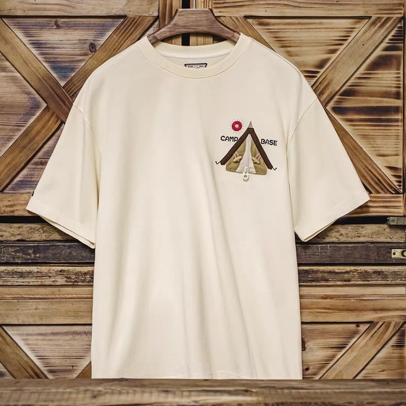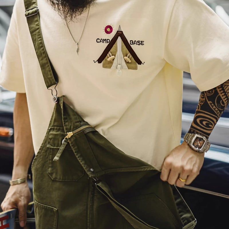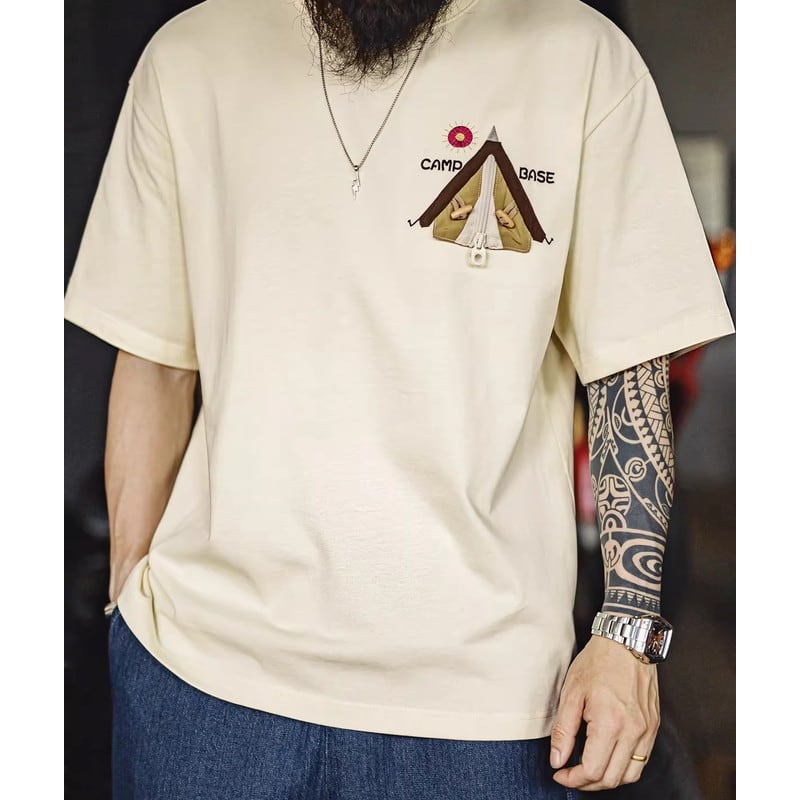 キャンプや普段使いに最適な、レギュラーサイズの半袖Tシャツです。胸元のユニークなパッチが、さりげない個性を演出。カジュアルな着こなしに合わせやすく、様々なシーンで活躍します。