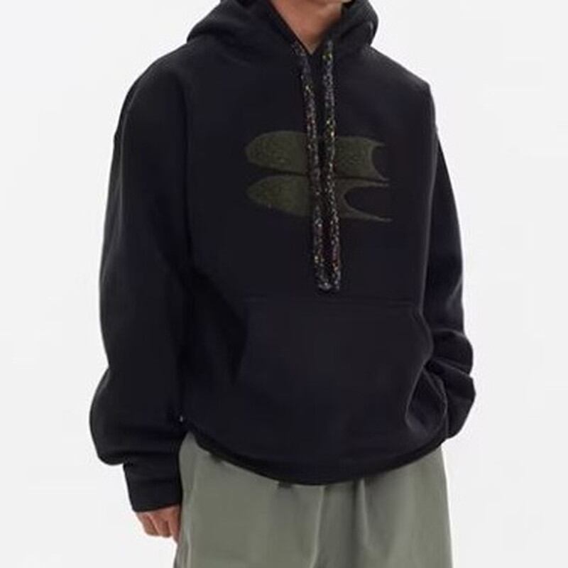 ゆったりとしたオーバーサイズの長袖スウェットパーカーは、リラックスした着心地で普段使いに最適です。ドローコードでシルエットを調整できるので、様々なスタイリングに合わせられます。ちょっとしたお出かけや、アクティブなシーンでも活躍する一枚です。