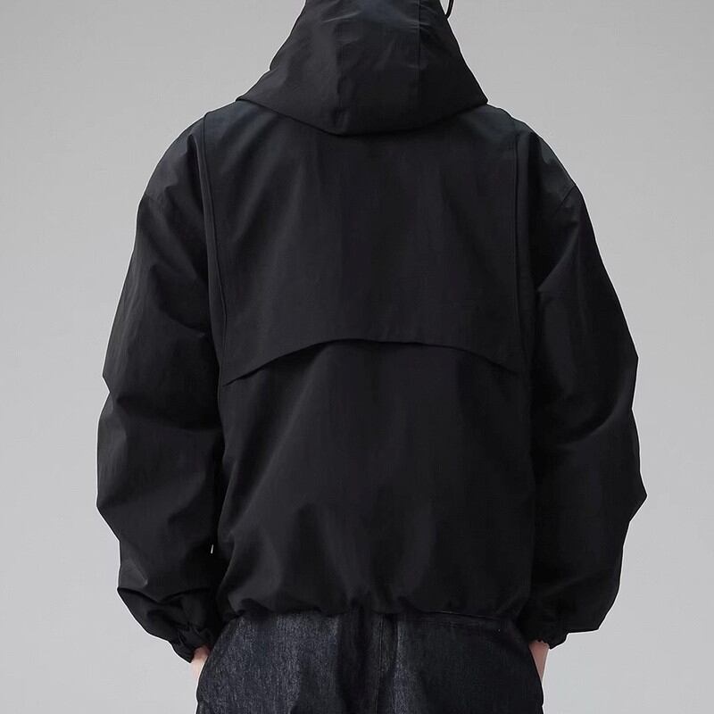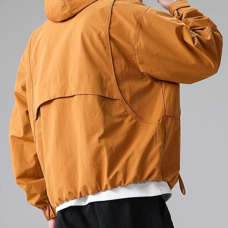 ヒップ丈のフーデッドジャケットは、普段使いから軽めのアウトドアまで対応できる汎用性の高いアイテム。ドローコードでシルエットを調整可能。カジュアルな着こなしに最適な一枚です。