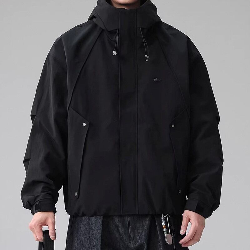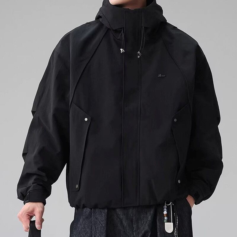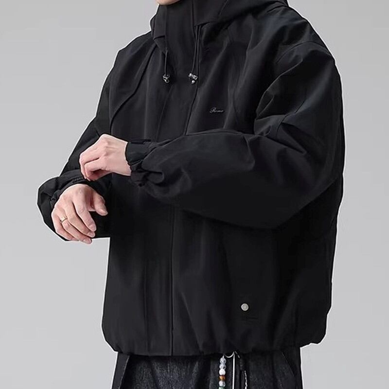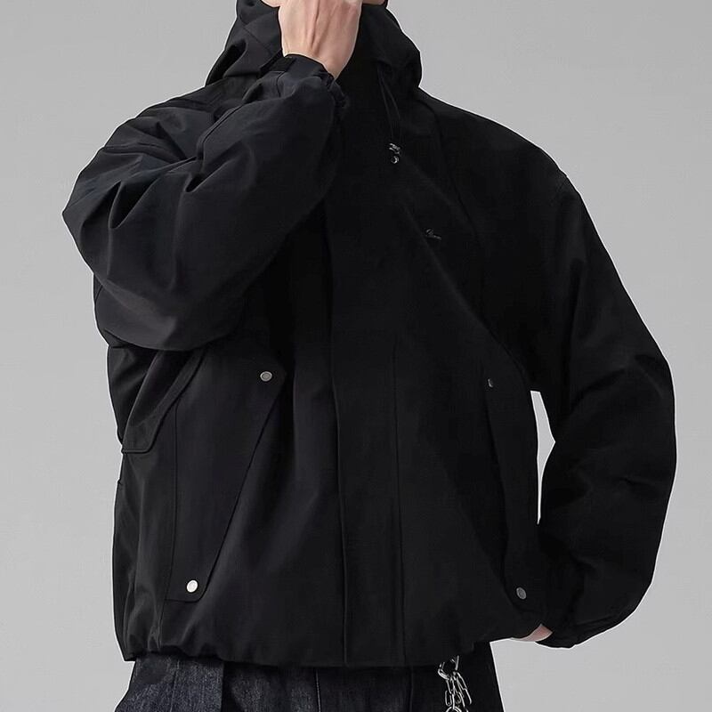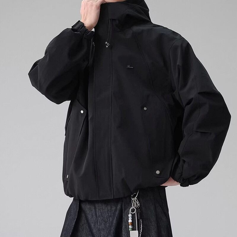 Hooded Hip-Length Drawstring Jacket ◇2color H1071