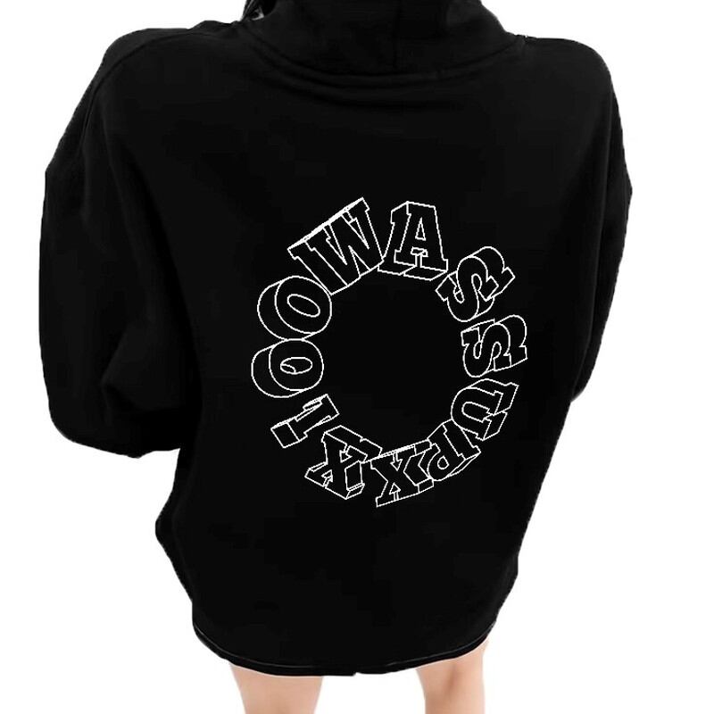 Long Sleeve Back Print Oversized Sweat Parka ◇4color H1069