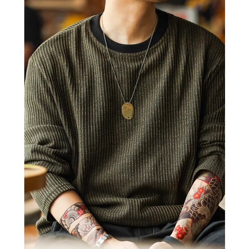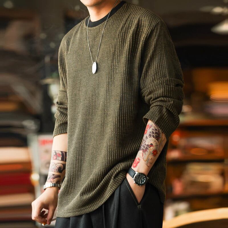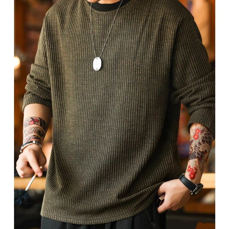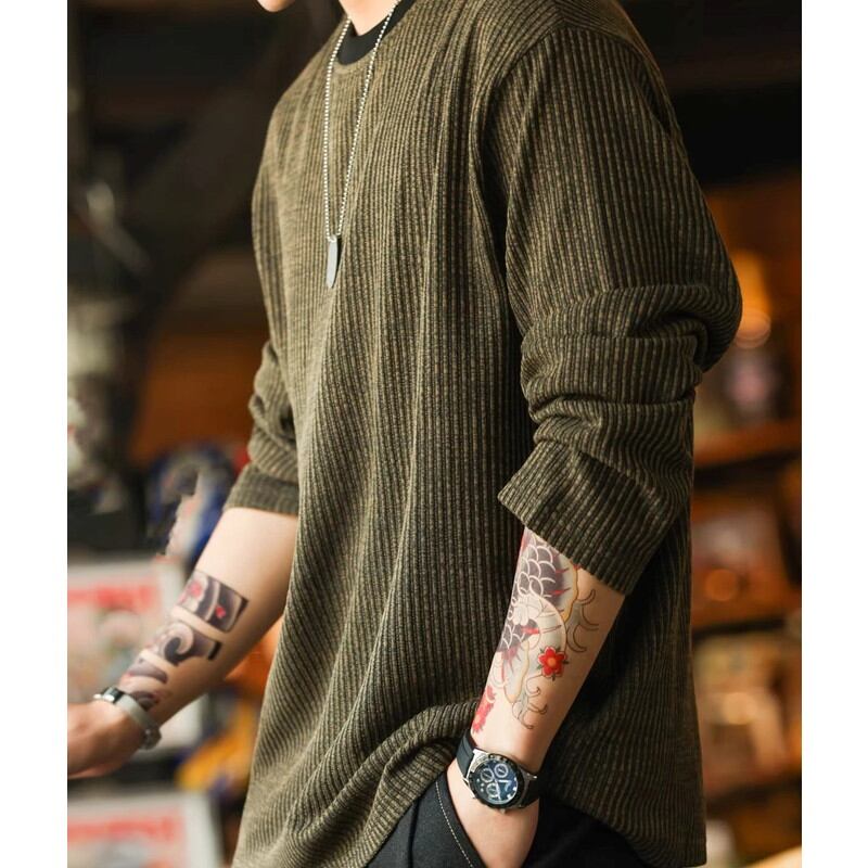 カジュアルながらも洗練された印象を与え、一枚で着てもインナーとしても活躍します。