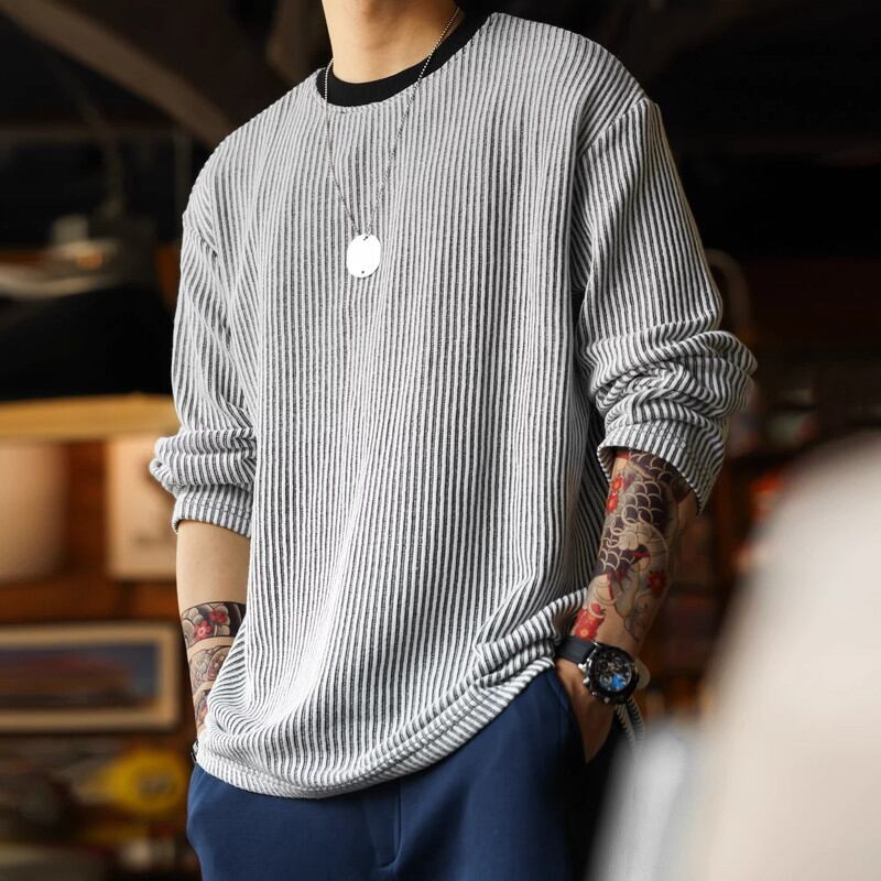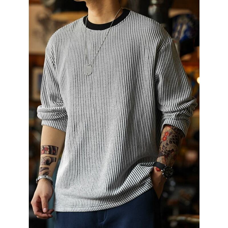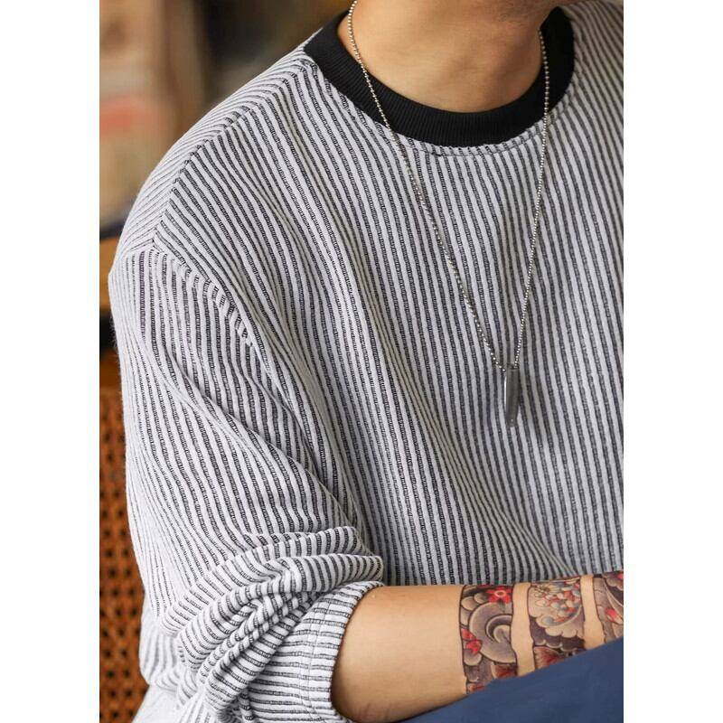 ストライプ柄が特徴的な長袖カットソー。