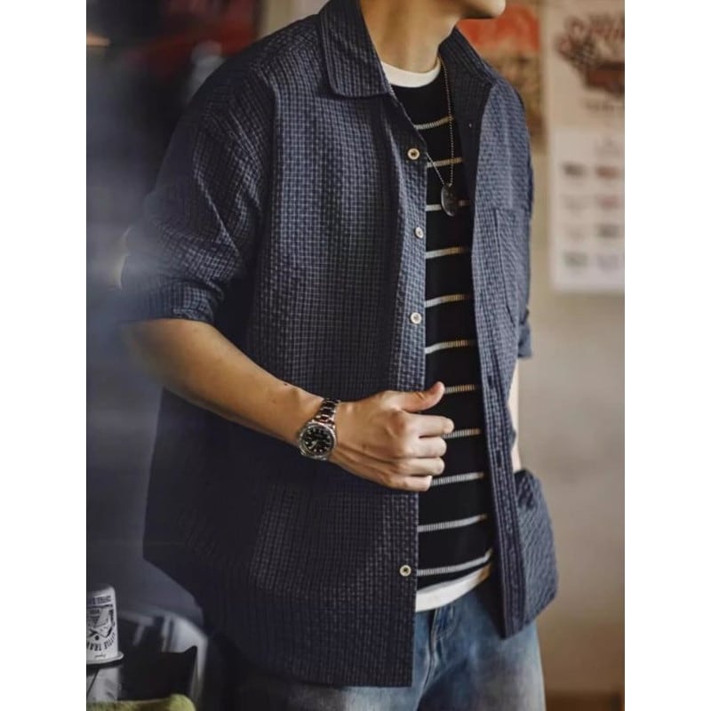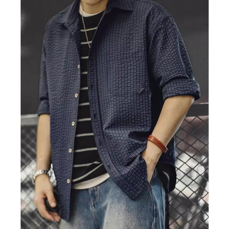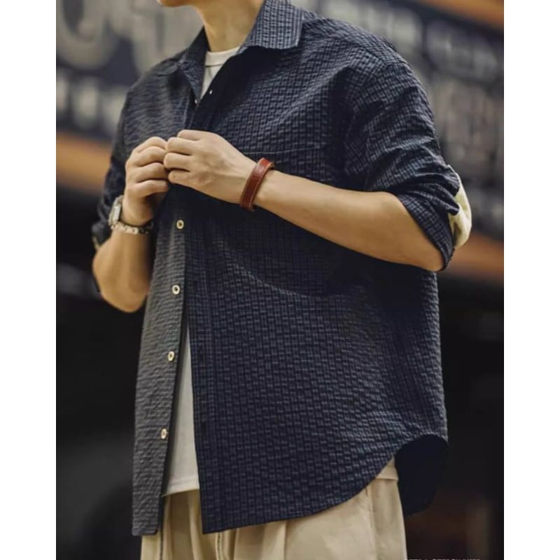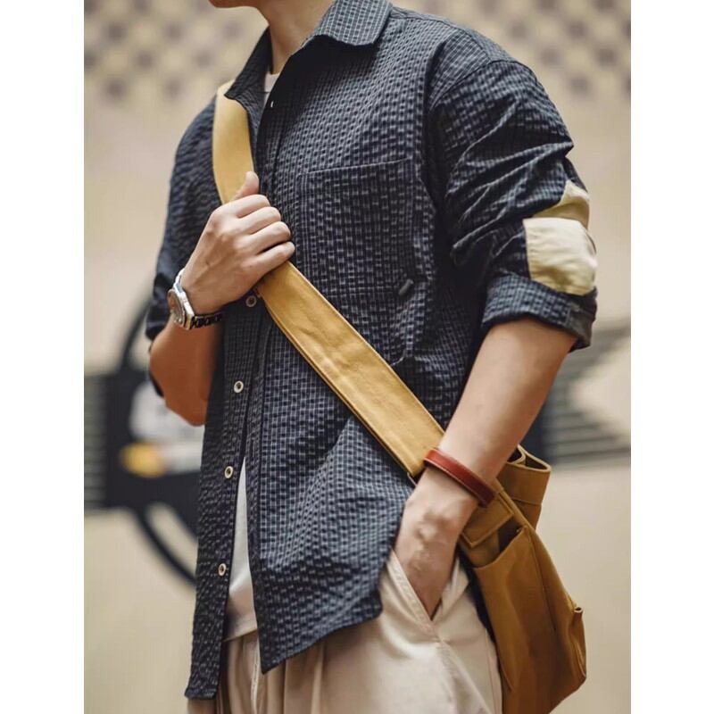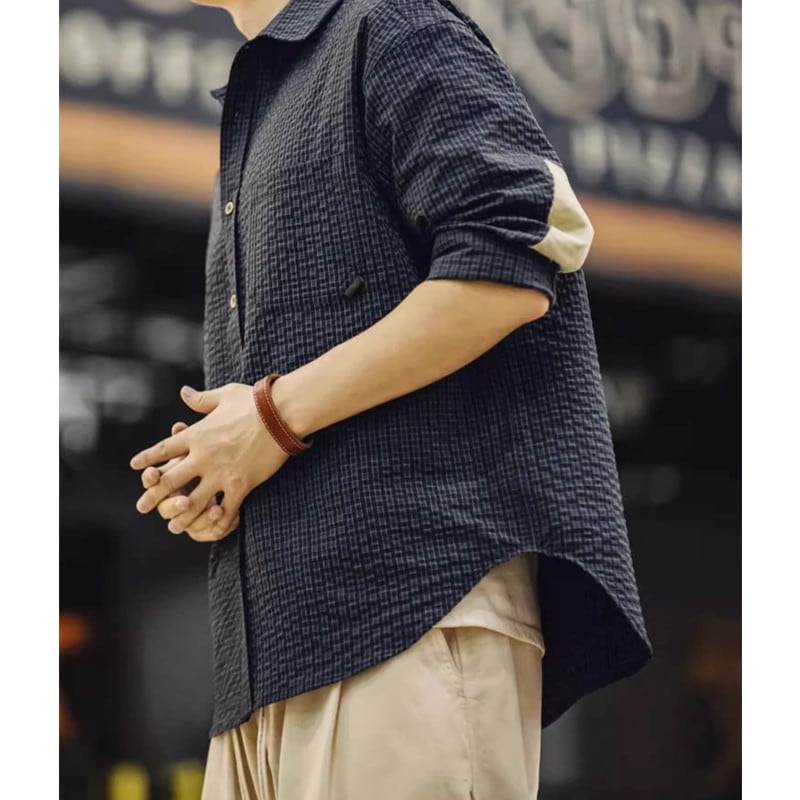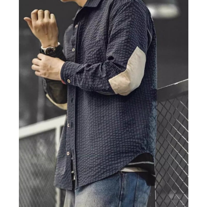 チェック柄が特徴的な長袖シャツ。肘のパッチがアクセントになり、カジュアルながらも個性を演出します。普段使いはもちろん、アウトドアシーンにもおすすめです。デニムやチノパンとの相性も抜群で、様々なコーディネートを楽しめます。